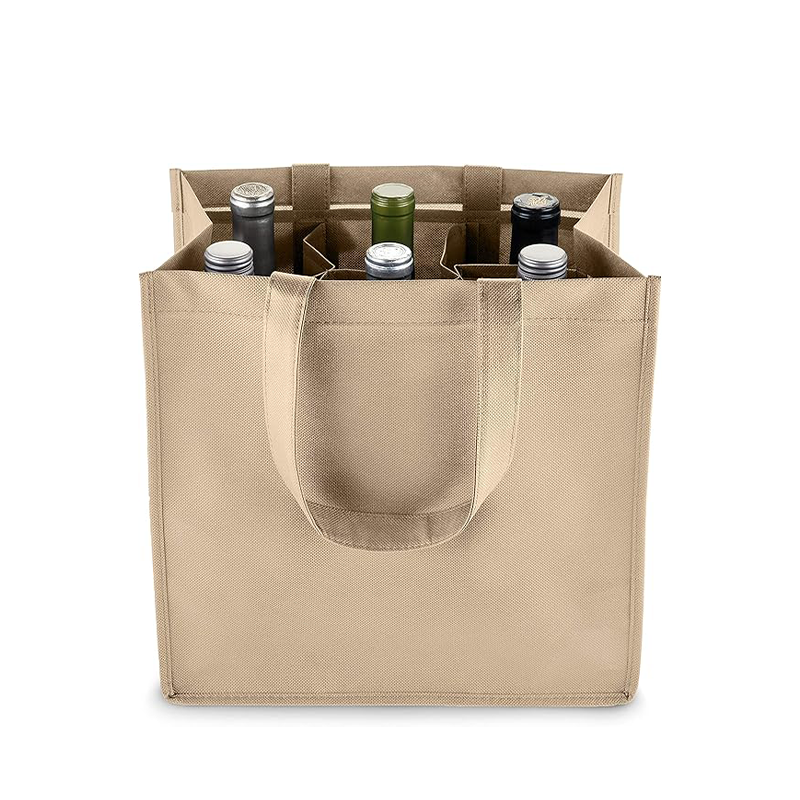 Durable non‑woven material that’s tough enough to support six heavy bottles yet light enough to carry with one hand. The fabric resists tearing, handles repeated use, and wipes clean after spills. It’s the strength of a cardboard box without the bulk.