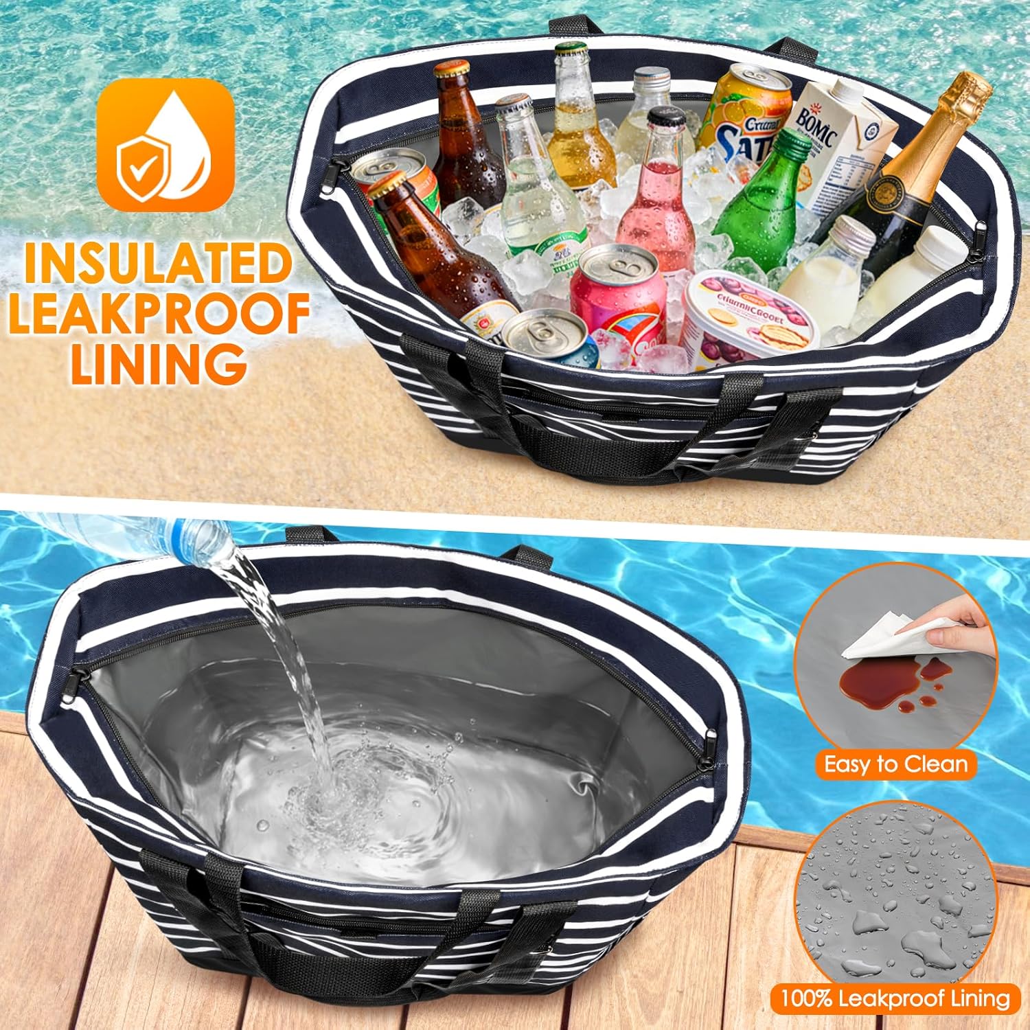 Ideal as a versatile insulated tote for beach vacations, where the leak-proof design contains melting ice and the 8+ hour insulation keeps drinks cold and salads fresh throughout sunny afternoons.