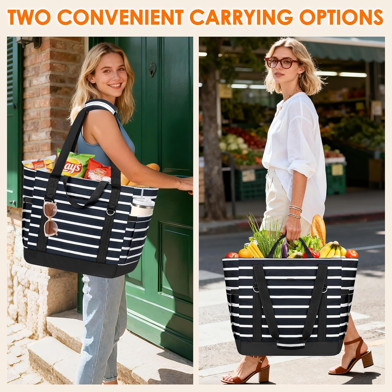 Perfect as a large capacity grocery cooler for supermarket runs, with separate compartments keeping frozen foods, produce, and non-perishables organized while maintaining optimal temperatures during transit.