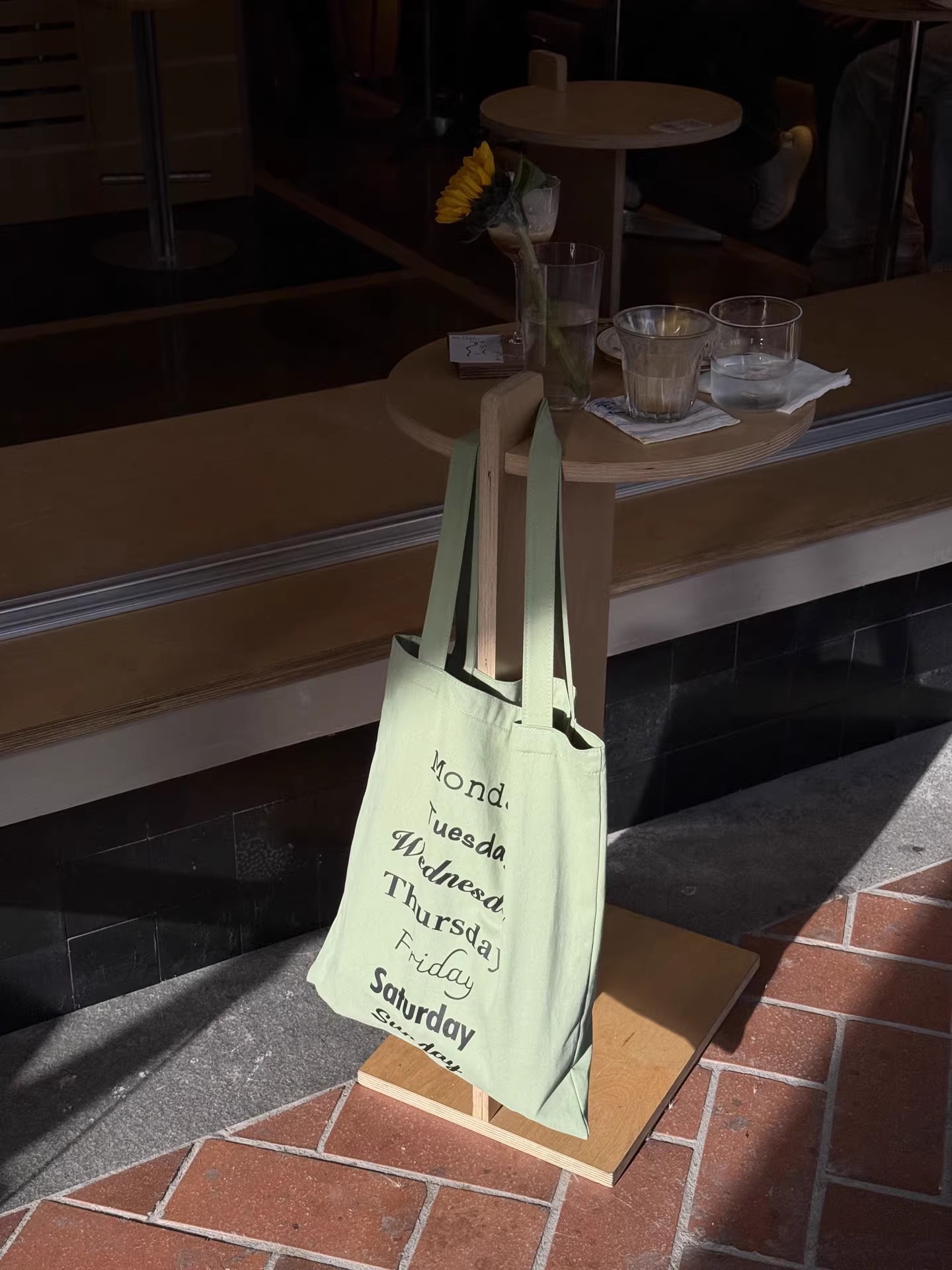 Embrace a fresh start every week with our cheerful and robust Weekdays canvas tote bag. Crafted from high-density, durable cotton canvas in a trendy avocado green hue, this bag is built to handle your busiest days. The playful lettering adds a touch of personality and resonates with a youthful, casual vibe. Designed for maximum utility, its generous 40x34cm dimensions provide ample space for textbooks, a laptop, gym clothes, or groceries, with a tested capacity of 10-15 pounds.