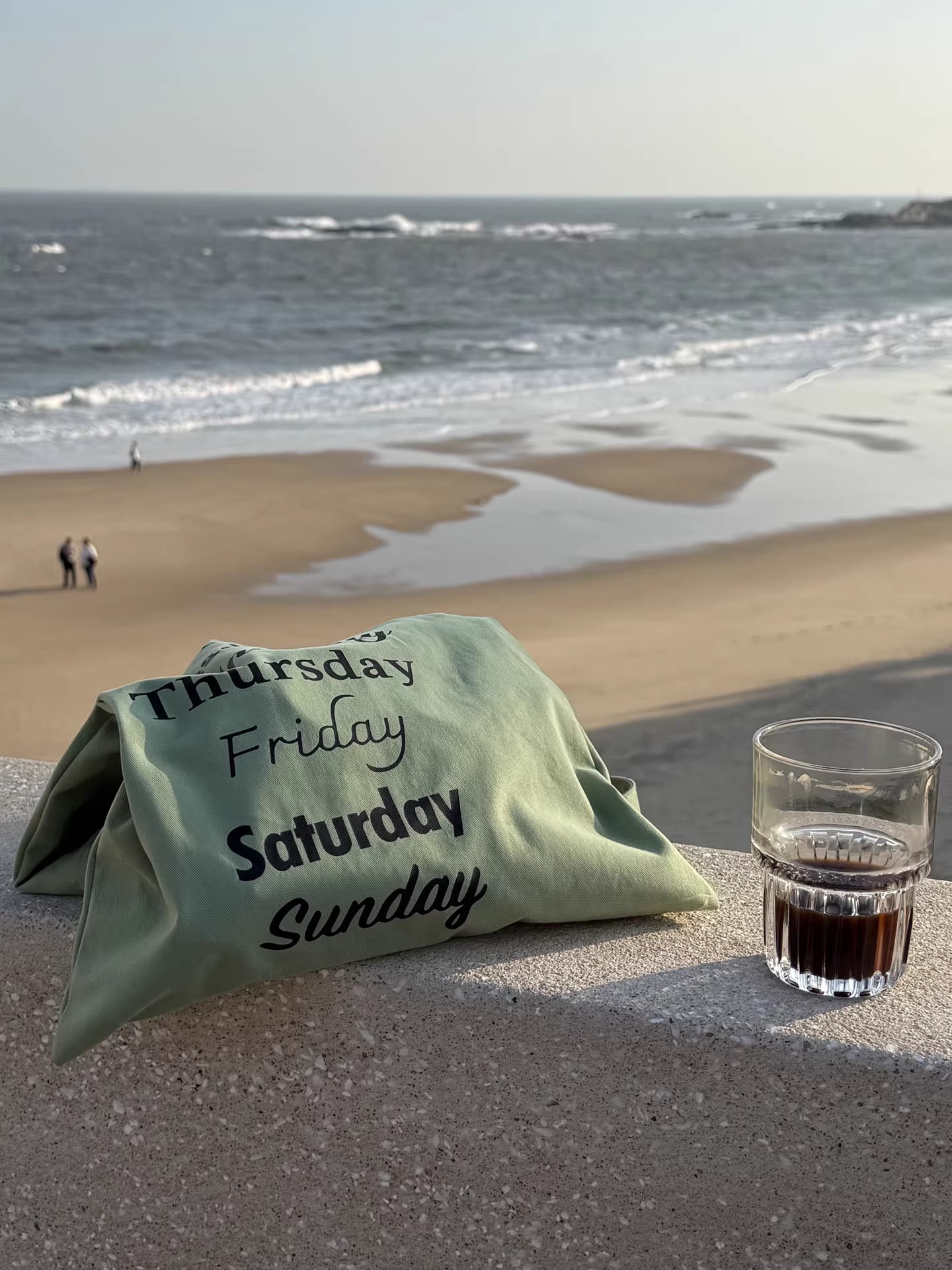 We provide a detailed quote for this avocado green canvas tote within 24 hours. For inquiries about customizing the weekday text or exploring other color options, direct contact will yield the most accurate pricing.