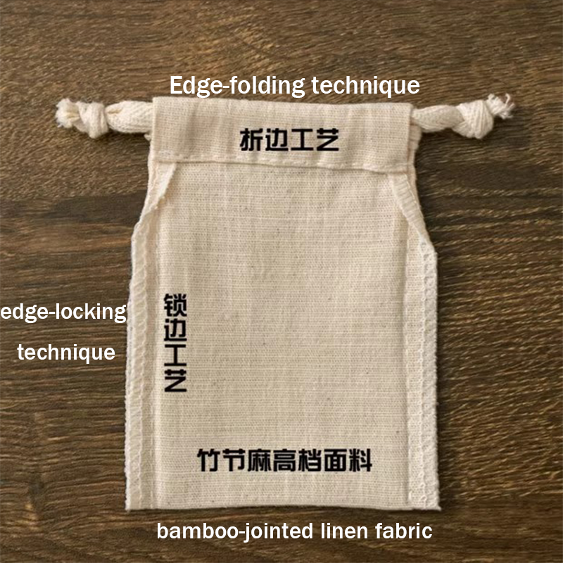 We specialize in custom-sizing these pouches to showcase your products perfectly. We can adjust the dimensions from the standard 8x11cm size, refine the folded hem and serged edge finishes for a flawless look, and apply subtle branding that complements the unique texture of the bamboo cotton linen blend.