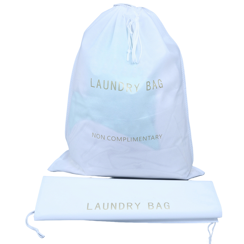 Ideal as a standard in-room amenity for guest laundry. This drawstring laundry bag wholesale item encourages tidiness and provides a hygienic solution, enhancing the perceived value of the stay and functioning as a practical hospitality laundry sack biodegradable.