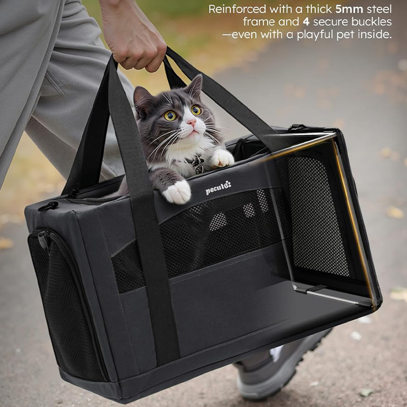 Engineered with a reinforced steel frame and integrated structural panel, this carrier maintains a rigid, collapse-resistant shape even on uneven surfaces. Its secure buckles and wide base provide ample room, ensuring pets remain safe and unconfined during transit.