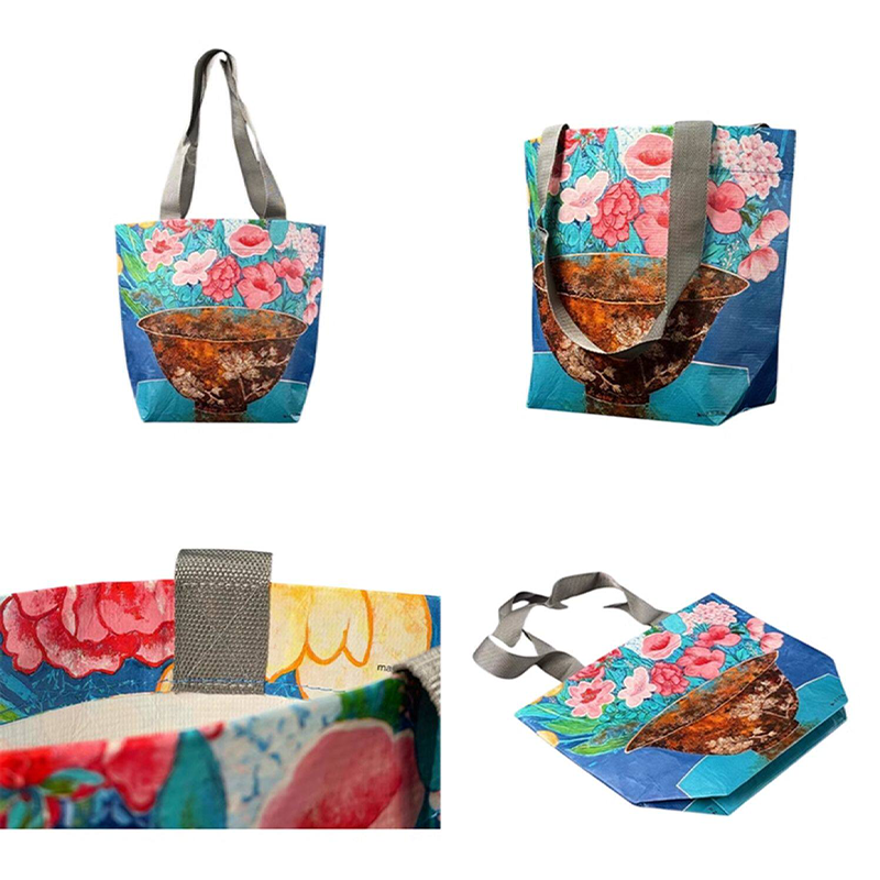 Elevate your daily carry from mundane to museum worthy with our exquisite cultural creative tote bag This piece seamlessly blends sustainability with sophisticated aesthetics Constructed from durable rPET Lixin fabric made from recycled materials it offers a lightweight waterproof and sturdy foundation for everyday use The true masterpiece is its surface adorned with intricate hand painted style prints featuring serene landscapes delicate florals elegant vases and classic tableware all rendered in a soft watercolor texture that exudes a rich artistic and handcrafted feel.