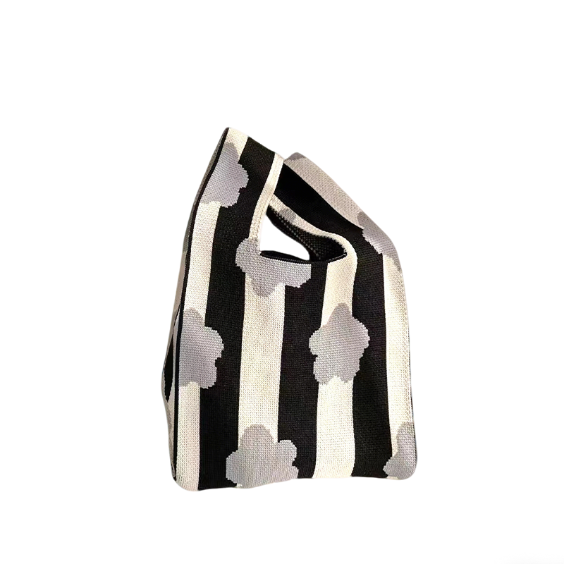 The Cow Print Knit Wristlet Tote Series brings together playful animal prints and everyday practicality in one lightweight package. Crafted from high-elastic polyester knit, the fabric offers a soft, textured feel with excellent shape retention—no pilling, no warping, wash after wash. The integrated jacquard knitting creates seamless patterns that won't peel or fade, from classic cow prints and polka dots to zebra stripes and abstract lines.