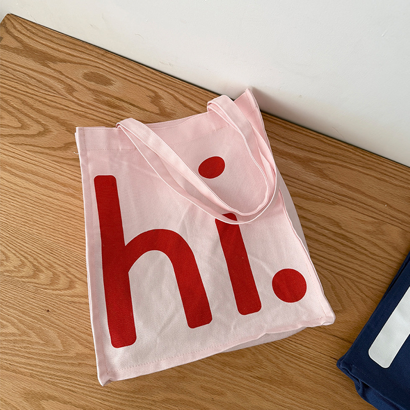 The clean "hi." greeting and natural canvas aesthetic align perfectly with minimalist lifestyles. Use it for daily routines—carrying a laptop to coffee shops, picking up groceries, or strolling through farmers markets. The simple design complements any outfit without visual clutter.