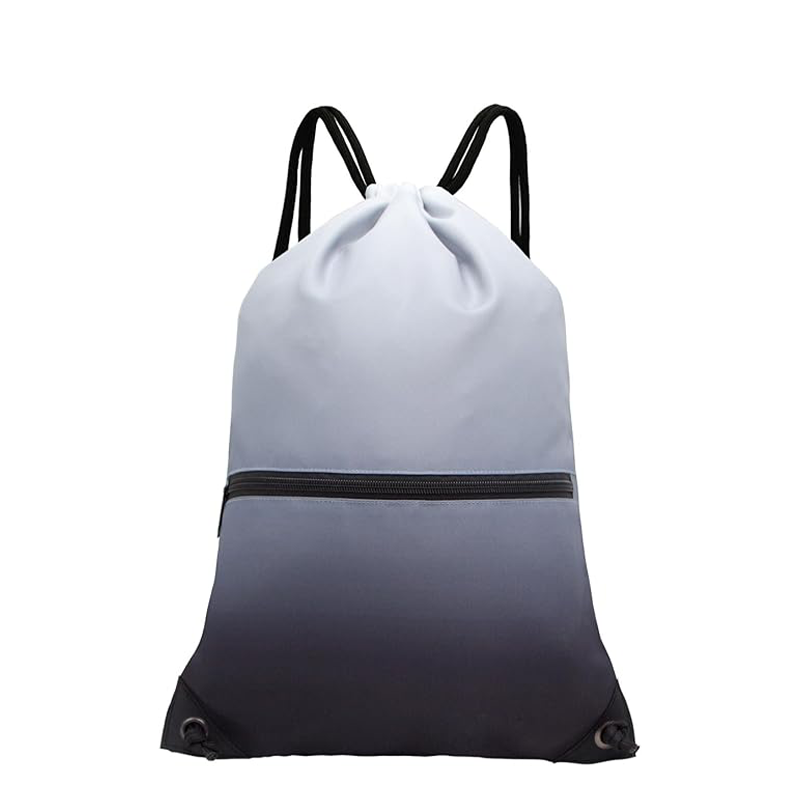 Carry workout clothes, shoes, towel, water bottle, and personal items to the gym. The draw cord shoulder strap keeps hands free during exercise, while the zipper pocket secures phone and keys securely.