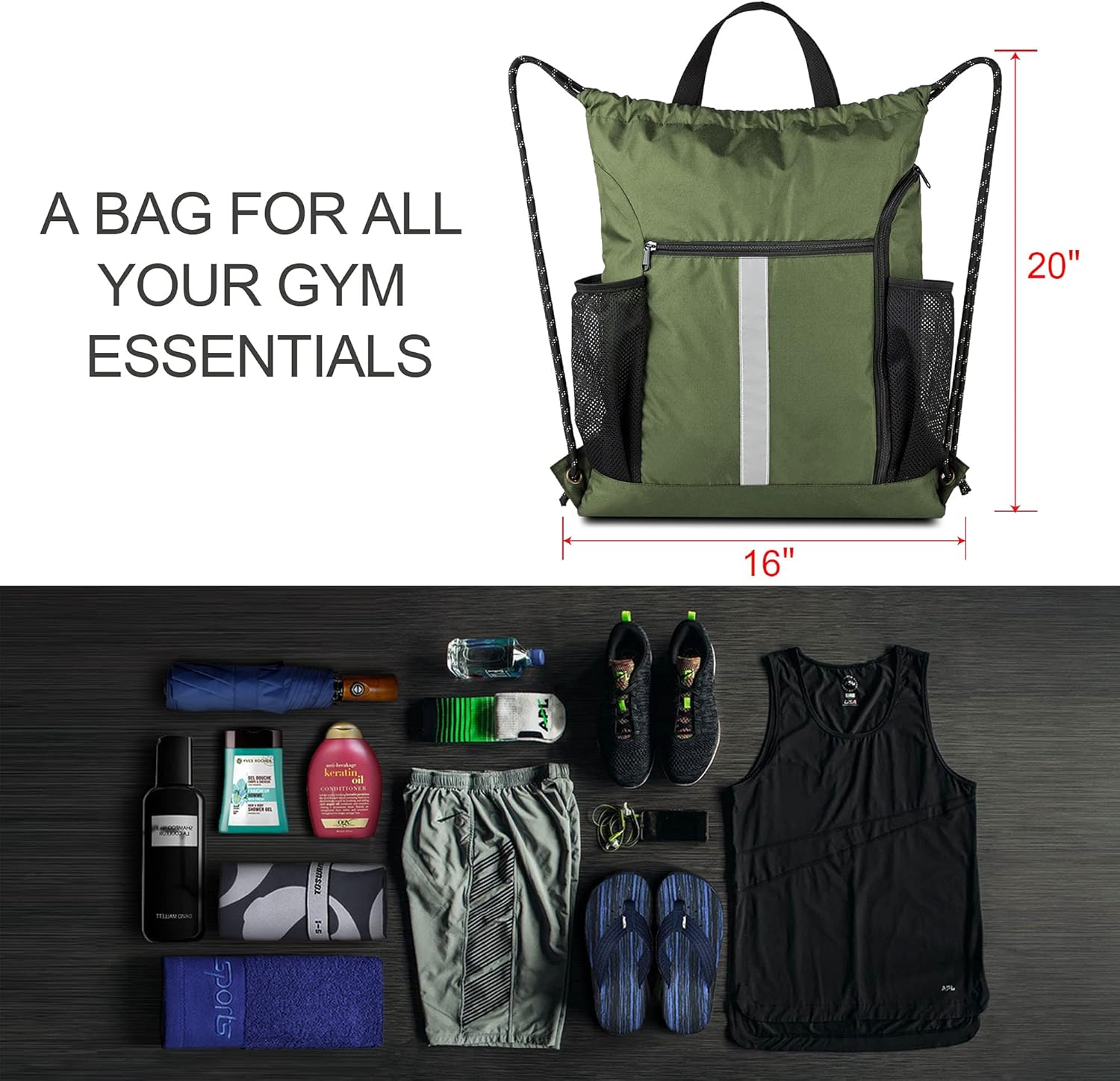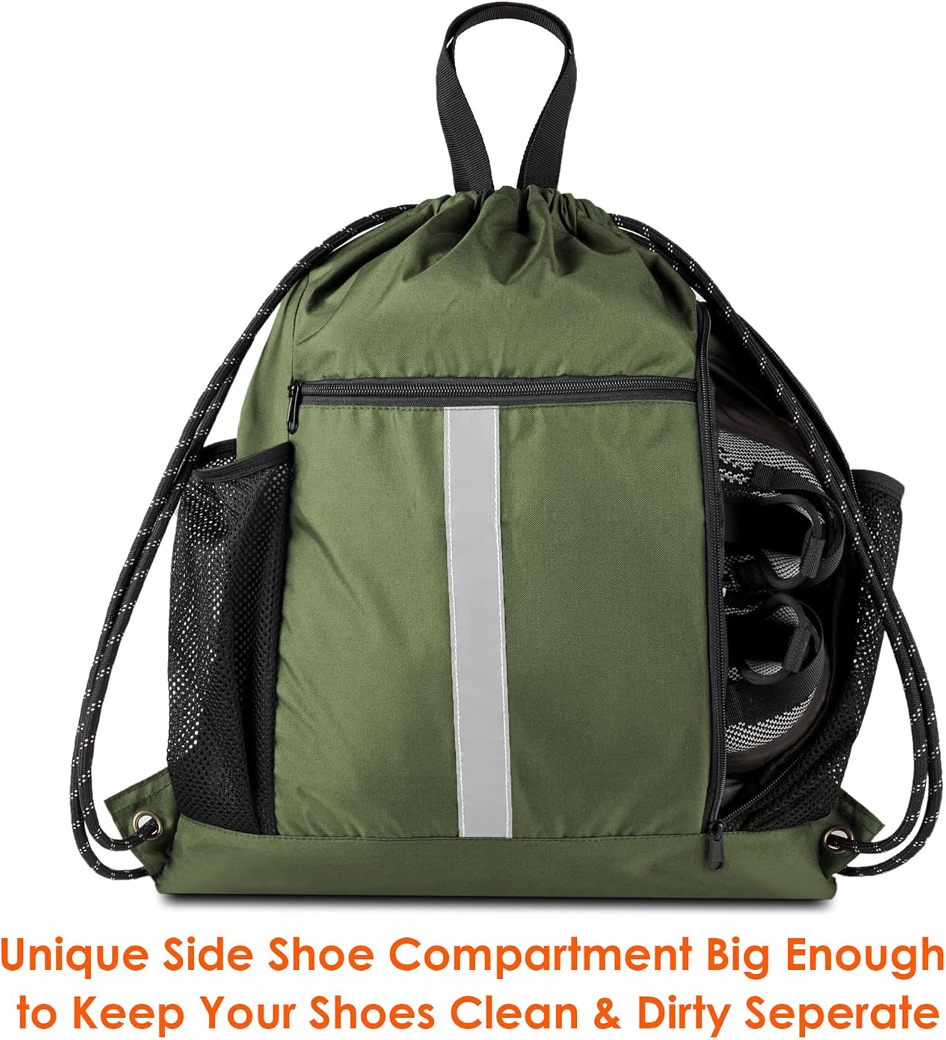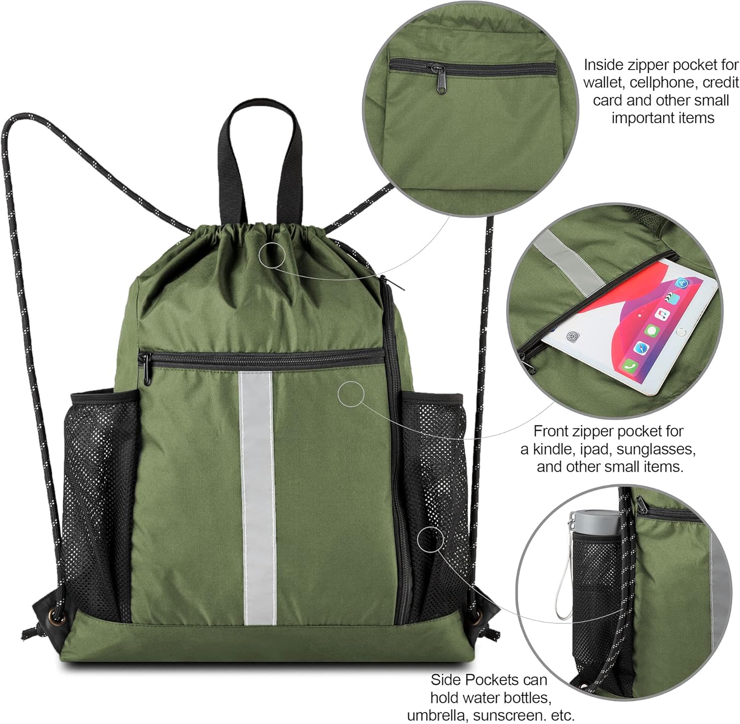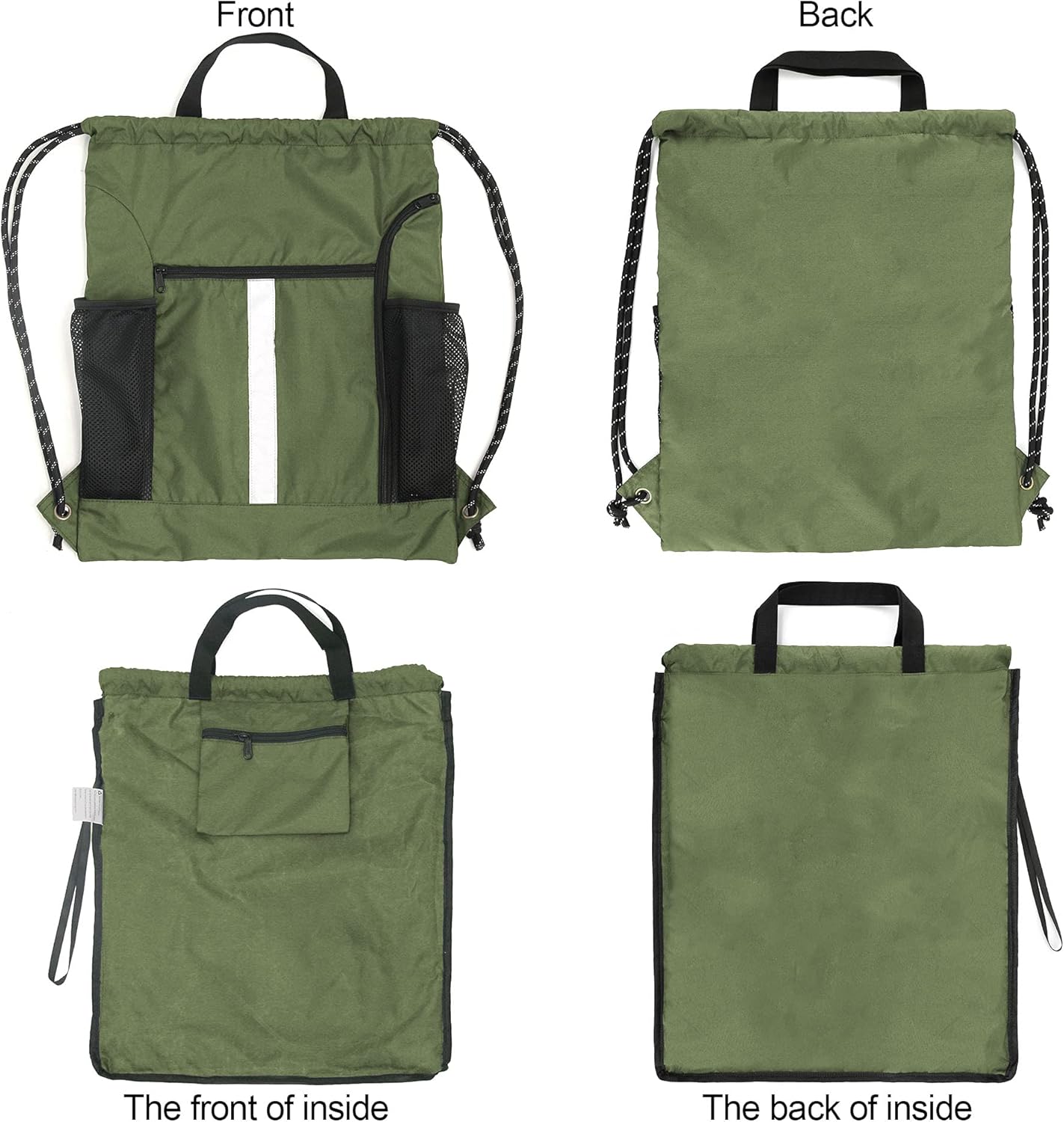 Constructed from high density Oxford fabric, this drawstring backpack offers exceptional durability to withstand daily wear and tear. The adjustable drawstring shoulder straps provide comfortable carrying for adults, with a backpack design that frees hands and sturdy thick straps that avoid digging into shoulders. Two convenient carry handles allow hand holding or wall hanging for versatile storage options. Vertical reflective strips enhance visibility in low light conditions, reducing the risk of accidents during evening or early morning use.