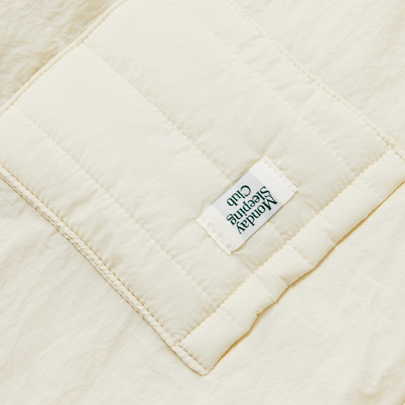 Material | Exterior: Water-Resistant Nylon; Filling: Silk-Cotton Blend; Accent: Polyester Lace |