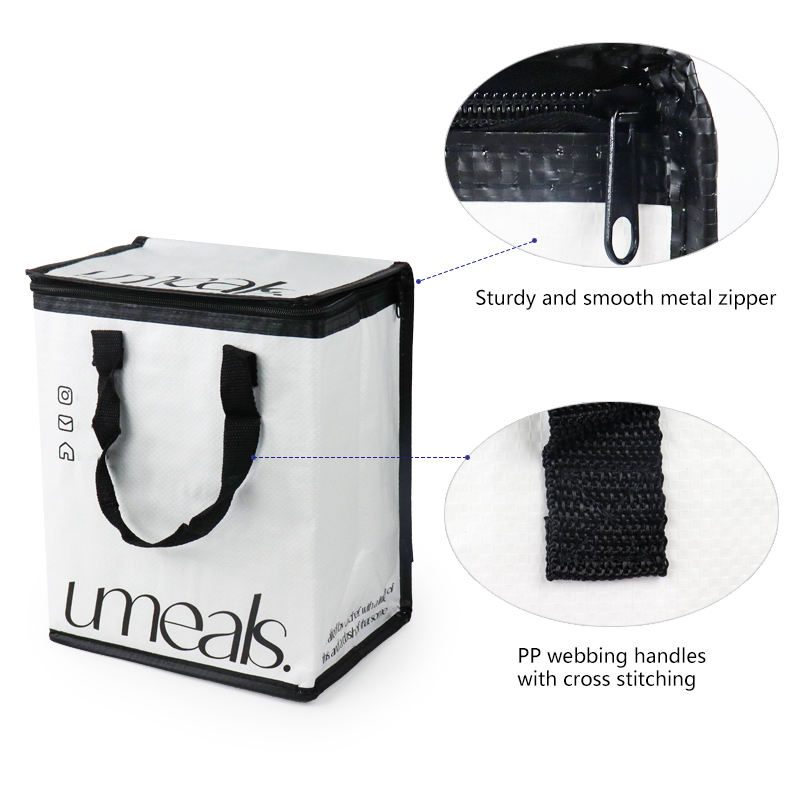 Material | Option 1 PP Woven Fabric Option 2 Non Woven Fabric Option 3 Recycled Polyester/Nylon (all with Aluminium Foil+EPE Foam Lining) |