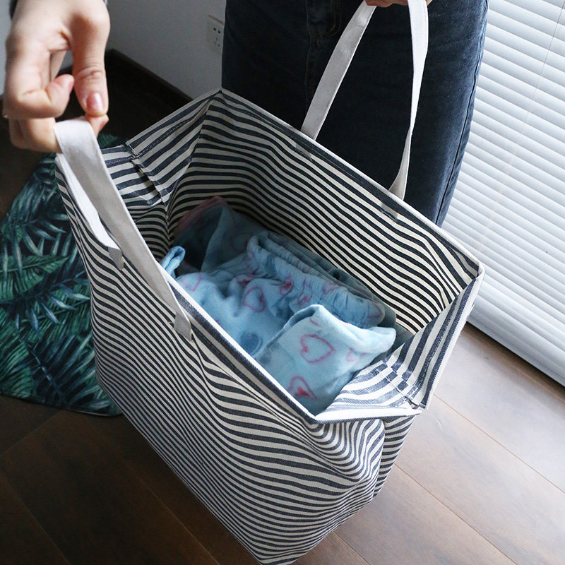 Use it as a stylish laundry hamper to collect dirty clothes directly in the bedroom or bathroom. The waterproof lining contains moisture from damp towels, preventing mildew. When laundry day arrives, simply grab the handles and carry it to the washing machine—no need to transfer clothes. Fold it flat afterward for discreet storage.