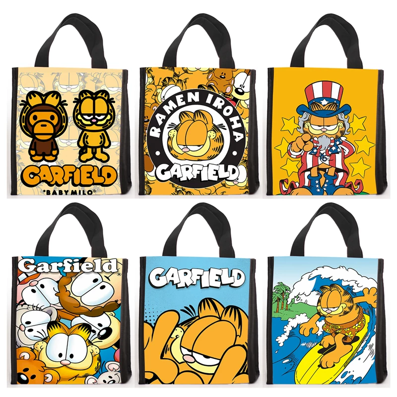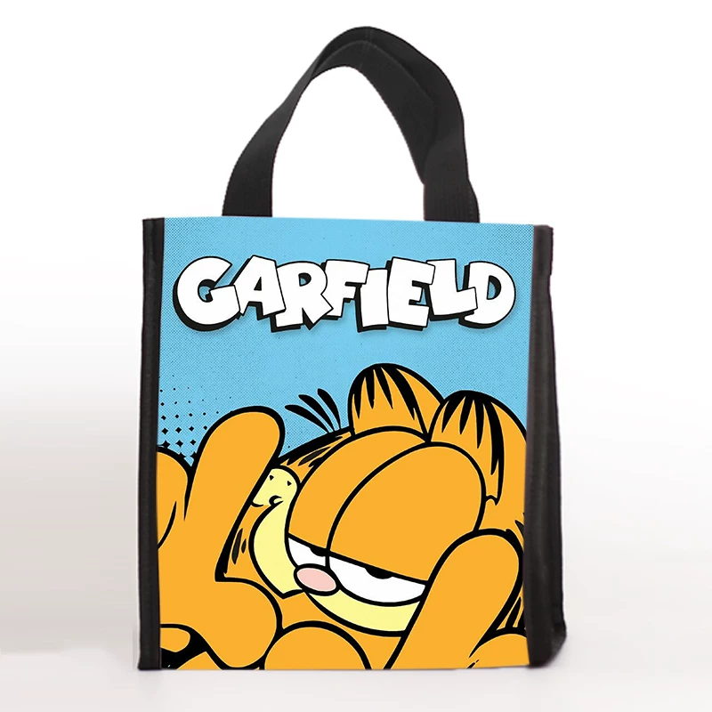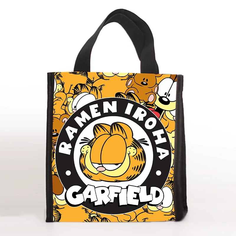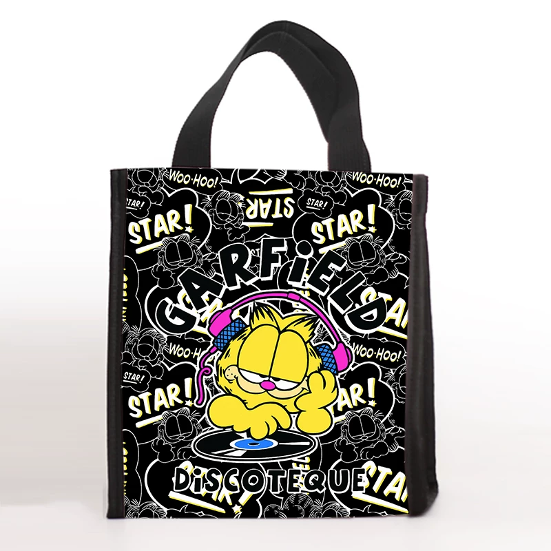 Available in two sizes: small measuring 20 by 12 by 22 centimeters for single meal portions, and large measuring 23 by 14.5 by 26 centimeters for multiple containers or family sized portions. The exterior showcases Garfield and Odie in various playful designs including comic strips, retro patterns, and collaborative artwork. The vibrant color schemes and humorous character expressions add personality to daily routines. Fully customizable through OEM and ODM services, this bag supports replacement of graphics with custom logos or exclusive artwork for brand collaborations or promotional events.