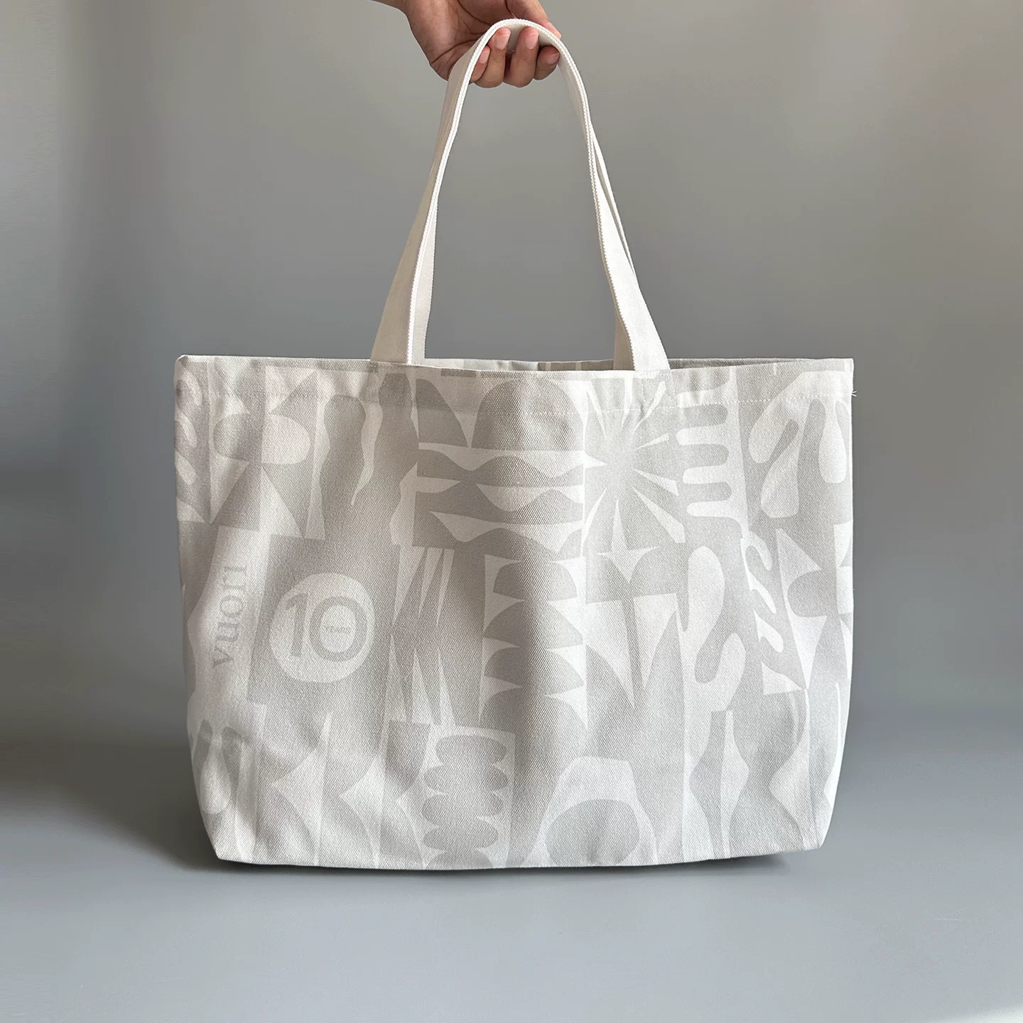 Elevate everyday carrying with the Vuori Geometric Art Canvas Tote Bag, where artistic expression meets functional design. This modern canvas tote showcases exclusive abstract geometric and botanical patterns in curated color combinations—deep emerald with ivory, burgundy with cream, and tonal grey—each thoughtfully designed to complement the clean "vuori" branding. The art print canvas bag is constructed from premium high-density cotton canvas that reveals its natural texture while providing exceptional durability, ensuring this minimalist art tote maintains its sophisticated appearance through daily use. Select editions feature special "10" anniversary markings, making them collector's pieces that celebrate brand heritage.