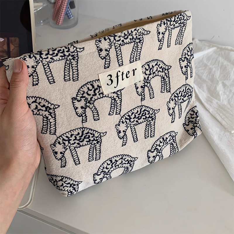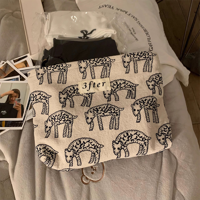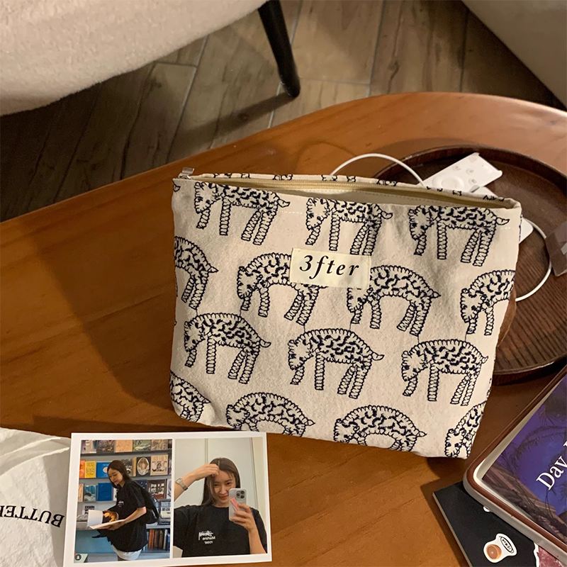 Ideal for brands focused on illustration or minimalist art. This goat print makeup bag canvas serves as a perfect brand-extending product, appealing to customers who value unique artistic design in functional everyday items.