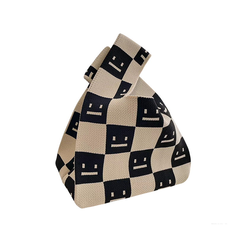 Meet our Grid Wristlet Aesthetic Knitted Handbag—a charming fusion of artisanal craftsmanship and everyday functionality. Hand-loomed with intricate grid knitting and reinforced yarn interlocks, this bag combines lightweight design with structural integrity, resisting snags and ensuring long-lasting use. The cute knot wristlet adds a playful touch, while the minimalist grid squares with subtle emoticons make it a unique fashion statement that complements any outfit. Perfect for urban commutes, market runs, or evening outings, it features a deceptively spacious open interior (no inner pockets) that fits laptops, cosmetics, wine bottles, and travel essentials. Foldable for easy storage, it’s a versatile companion for work, travel, and social events. Customizable in color and size, this knitted handbag caters to personal style preferences and brand collaborations, blending aesthetic elegance with eco-friendly charm. Every piece undergoes 100% quality control, guaranteeing meticulous craftsmanship and customer satisfaction.