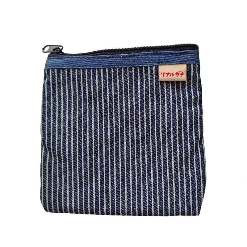 Presenting an officially licensed Sanrio Hello Kitty pouch set, designed to bring Japanese kawaii culture into everyday organization. This coordinated collection features three essential pieces crafted from premium soft cotton canvas, including durable denim and classic stripe fabrics in a versatile navy color palette. Each item is adorned with unique, playful Hello Kitty embroidered patches (featuring motifs like motorcycles and watermelons), adding a touch of nostalgic, charm to their retro and practical design.