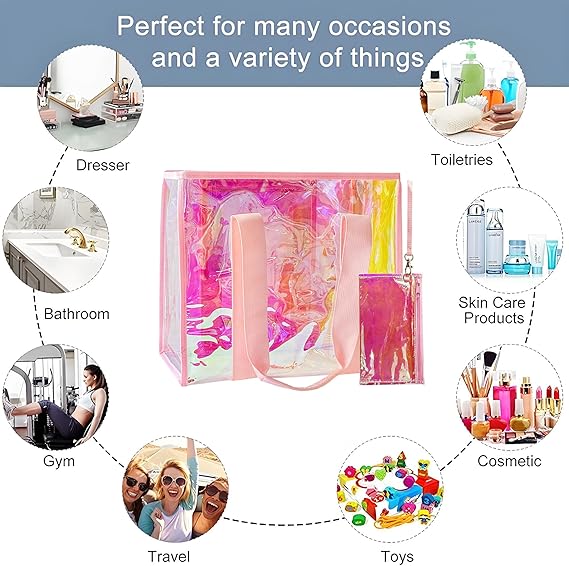 Our model makes this unique, high-impact, and durable holographic tote an accessible statement piece. We deliver a bag where the value shines through in its innovative finish, practical transparency, and its ability to function flawlessly across beach, gym, travel, and event scenarios.