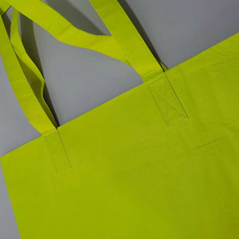 Our quality checks rigorously validate the 100% waterproof integrity of the double-sided laminate, the reinforced stitching strength of the extra-long handles under heavy loads, and the overall durability of the oversized rPET fabric construction.