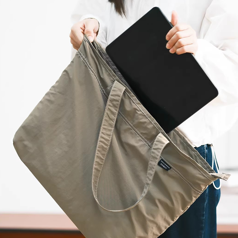 Discover the essence of relaxed sophistication with our Japanese Style Large Capacity Waterproof Nylon Tote. Designed for the modern individual who values clarity and function, this bag embodies the minimalist work tote philosophy with its clean lines and thoughtful construction. The unique trapezoid shape tote design, wider at the top, creates a naturally slouchy silhouette that enhances its casual elegance while maximizing interior space. Crafted from a distinctive crinkled nylon fabric, it offers a soft touch, remarkable lightness, and reliable protection against everyday moisture. Presented in a palette of serene, low saturation color bag options like mint green, oatmeal, and olive, it brings a refreshing and versatile aesthetic to any wardrobe, seamlessly blending with everything from crisp office wear to relaxed weekend outfits.