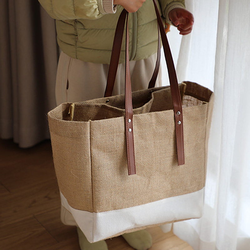 Serve as a reusable market bag for boutique shopping, bookstore visits, or as a daily work tote. Its combination of natural texture and leather accents makes it a fashion-forward accessory that complements a casual outfit.