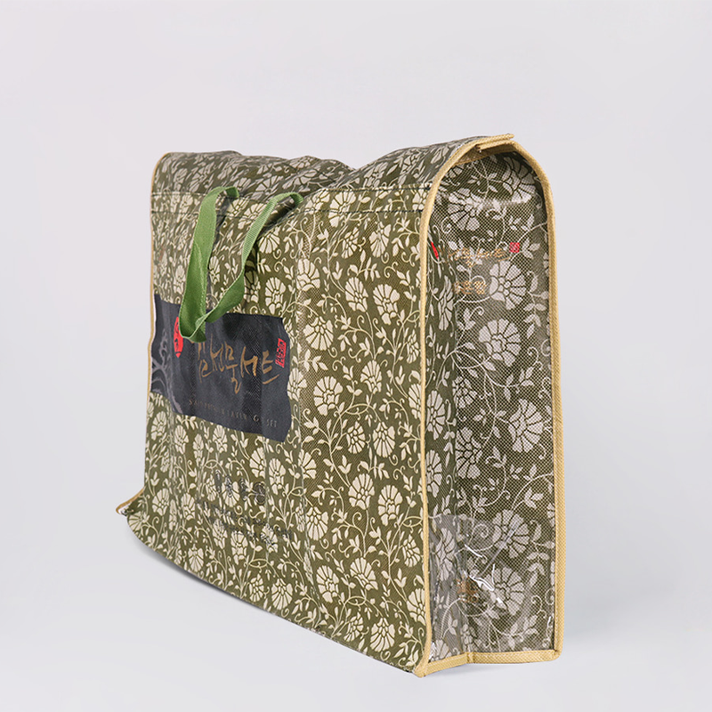 Designed specifically for the premium seaweed gift box market, this tote redefines luxury gifting. Its wide velcro flap creates a secure seal, shielding delicate contents from moisture and crushing, while the built-in cardboard bottom and side supports maintain a flawless, boxy shape that stands stably on shelves for impressive luxury food presentation. The traditional aesthetic, customizable with intricate patterns, resonates deeply with Asian markets and overseas Korean communities, making every gift an expression of cultural appreciation and refined taste.