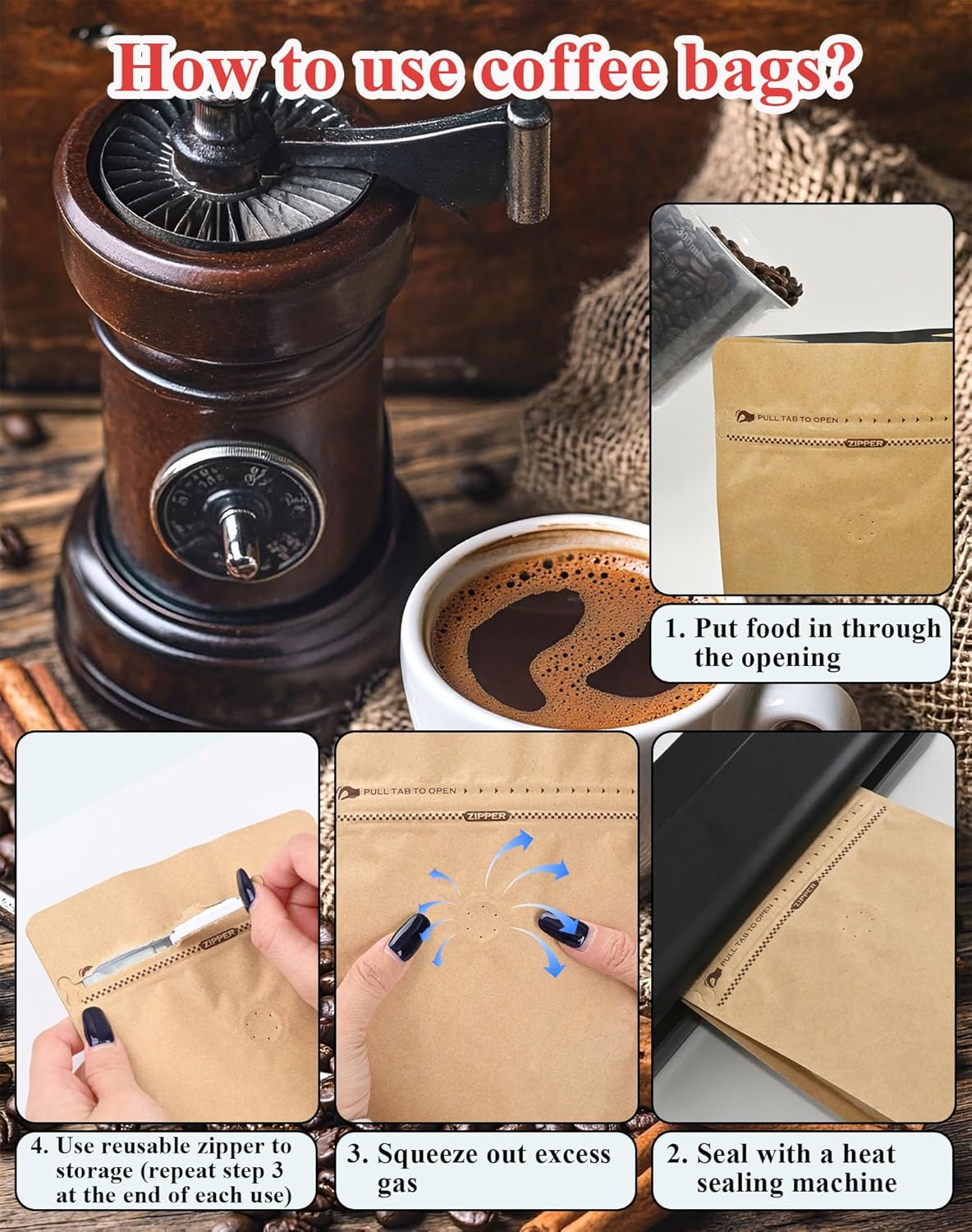 Home coffee enthusiasts can transfer beans from commercial packaging into these resealable bags. The valve preserves aroma and flavor, and the zipper closure allows daily access without compromising freshness.