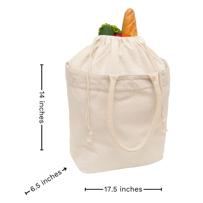 Replace single use plastic bags with this heavy duty tote for supermarket runs and farmers market trips. The drawstring closure keeps produce and boxed items secure during transport, while the 70 pound capacity handles even the largest weekly hauls.