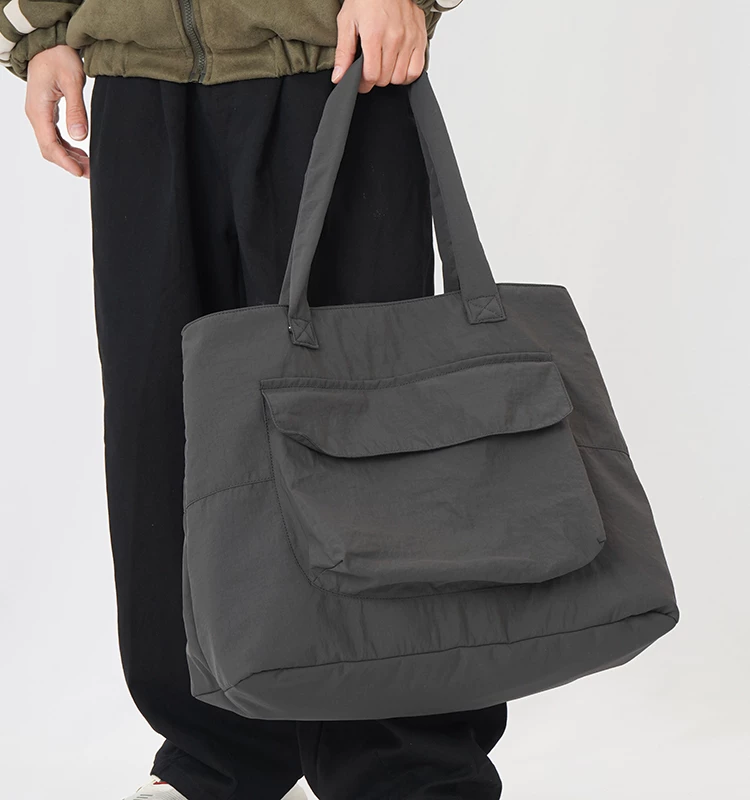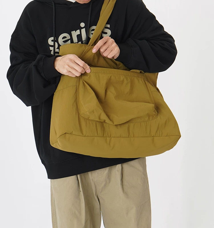 Embrace understated elegance with our Minimalist Water Resistant Nylon Tote Bag, designed for the modern individual who values both form and function. Crafted from soft, lightweight nylon with a subtle crinkled texture, this bag provides reliable water resistant protection against daily spills and light rain. Its refined aesthetic is anchored by a palette of sophisticated earth tones—olive green, charcoal grey, and caramel brown—that complement everything from casual workwear to weekend outfits. The quilted padded tote bag construction, filled with thin batting, creates a plush, structured silhouette that cushions your belongings. Thoughtful details like a wide-flap front pocket and a discreet hidden zippered compartment offer quick, secure access to essentials, marrying clean lines with practical utility.