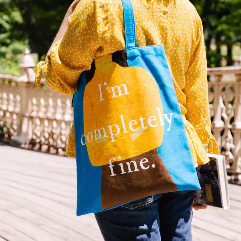 Celebrate the beloved novel Eleanor Oliphant Is Completely Fine with this officially licensed Out of Print Literary Canvas Tote Bag. This piece is part of the brand's cherished collection that transforms iconic book covers into wearable art. Crafted from durable 12oz heavyweight cotton canvas and reinforced with double-stitched seams, this tote is built to carry your world with literary flair. The design faithfully reproduces the stunning cover artwork by Jaya Miceli, featuring the novel's memorable quote in bold typography. It’s more than a bag—it’s a statement of resilience, a conversation starter, and a tribute to the power of stories, perfect for book lovers who wear their favorite reads with pride.