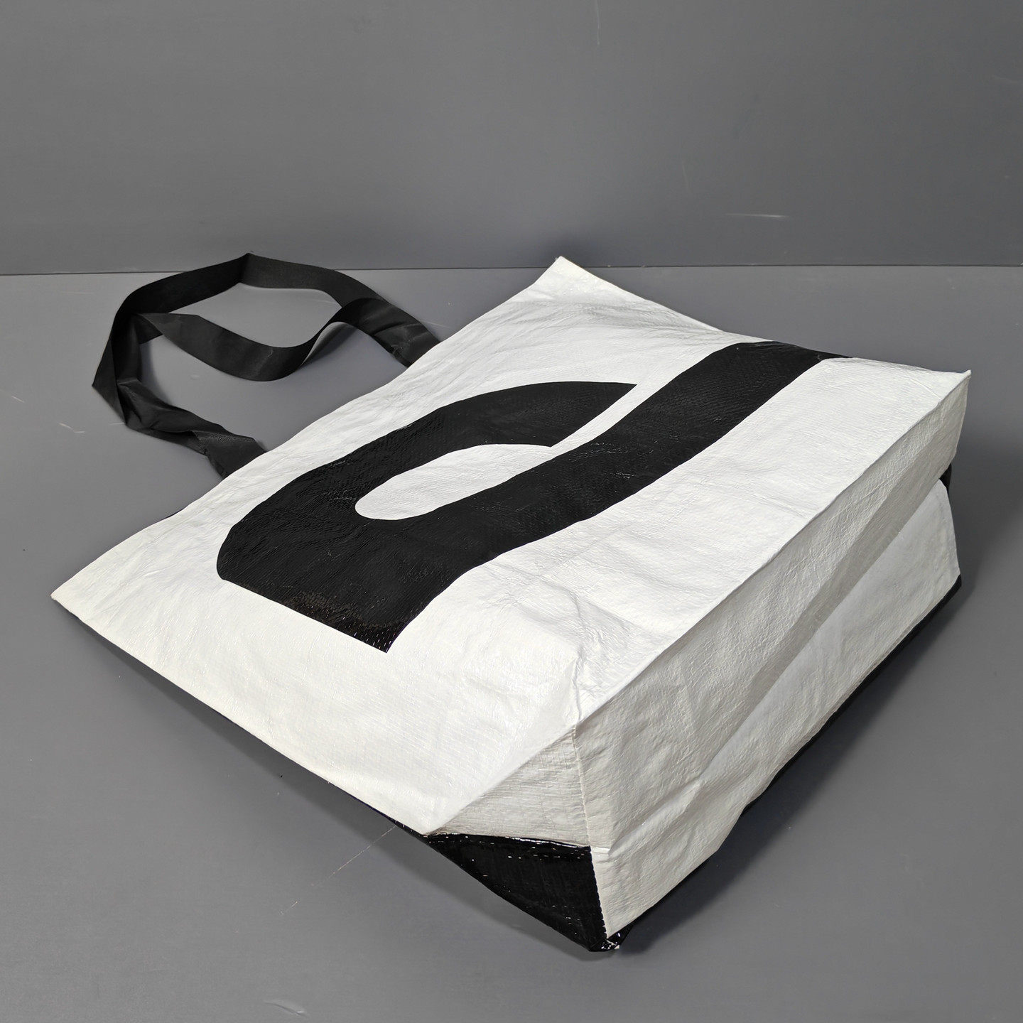 The exterior showcases a large stylized graphic in high-contrast colors, creating a modern minimalist aesthetic that stands out in any setting. Two striking color options are available: a crisp white base with a bold black graphic for maximum contrast, or a dramatic black base with a white graphic for a sophisticated inverted look. The same graphic appears on both sides, ensuring cohesive branding from any angle. As genuine original stock, these bags are unused and in perfect condition, offering exceptional value. Fully customizable through OEM and ODM services, this bag supports replacement of the graphic with brand logos, custom patterns, or event themes using screen printing or UV digital techniques.