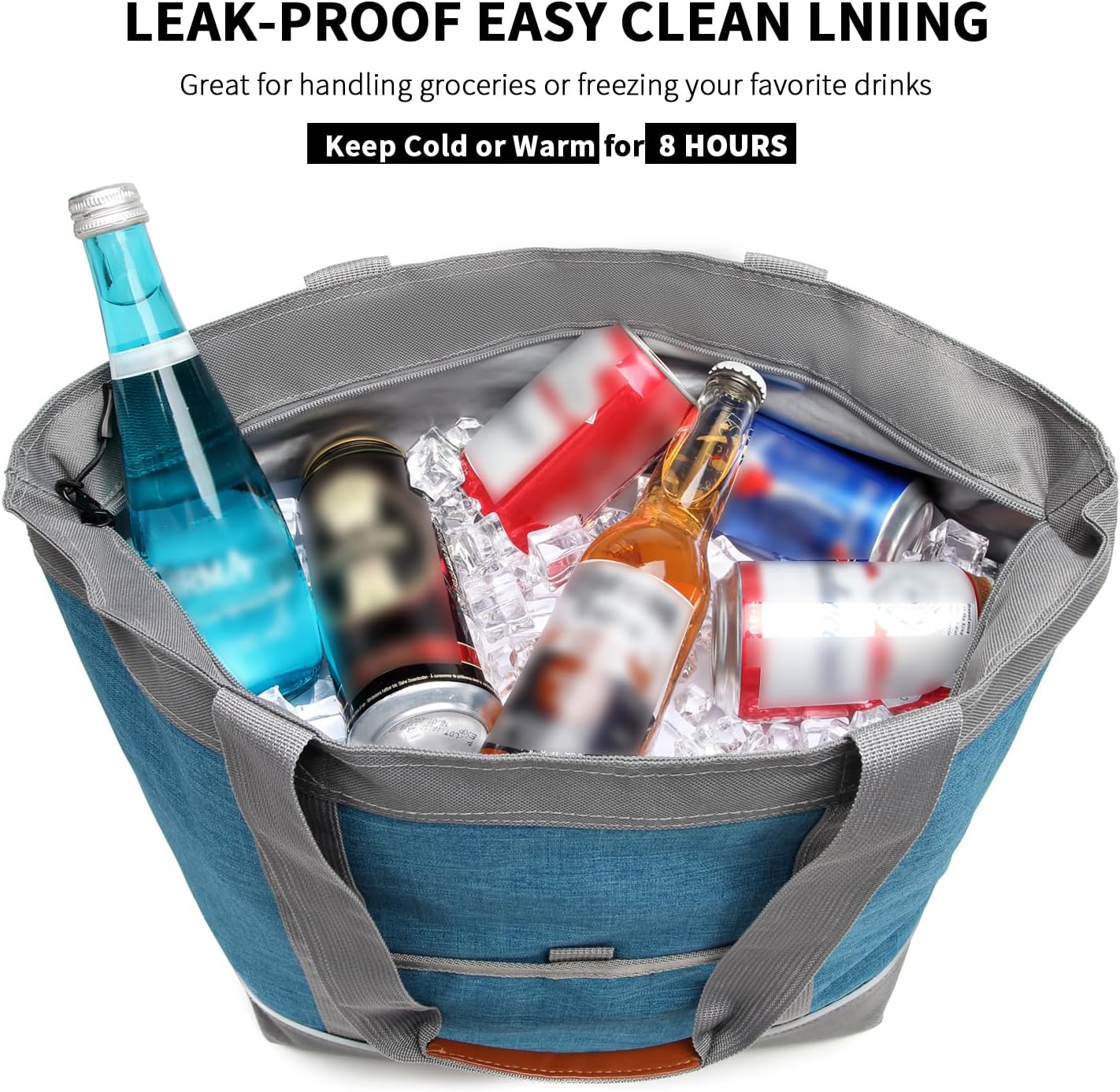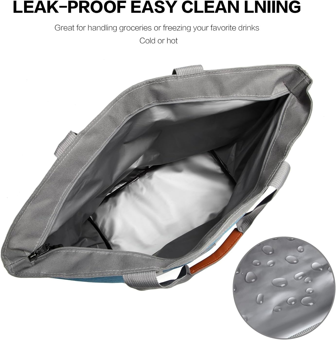 Crafted from heavy duty Oxford cloth with reinforced stitching, this insulated tote offers exceptional durability for daily use. The premium thermal foam insulation maintains temperatures effectively, keeping groceries frozen, drinks chilled, or takeout meals warm for up to 6 hours. A high quality leakproof interior prevents spills while resisting stains and odors, making it easy to clean and ideal for food transportation.