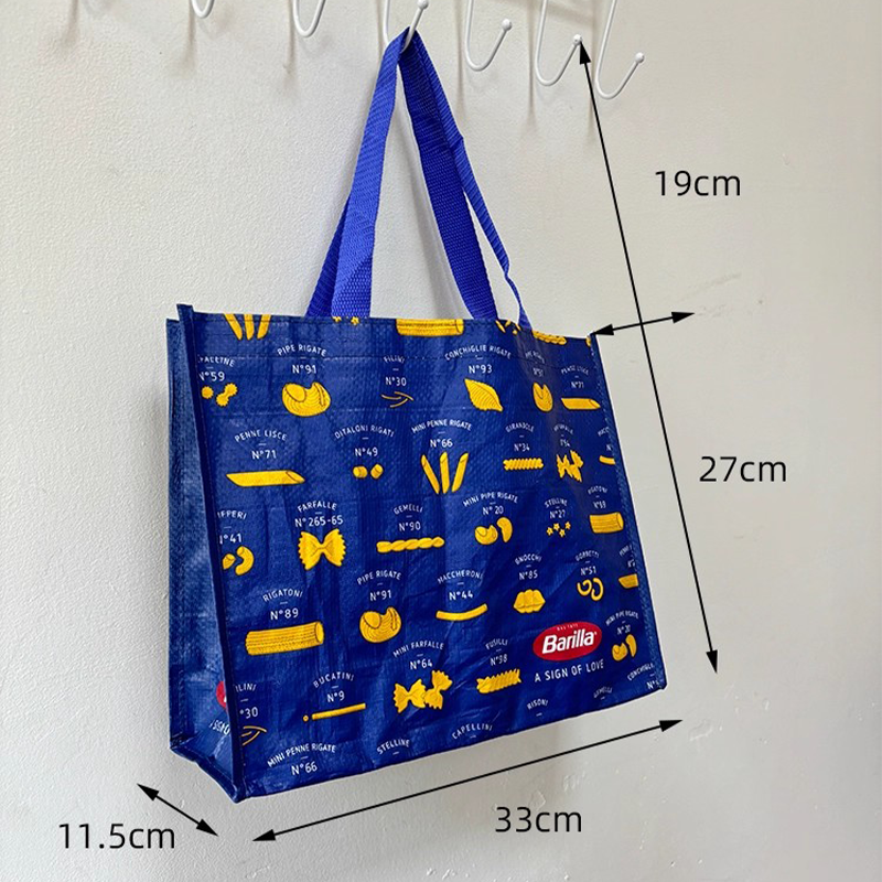 Made from glossy laminated PP non-woven, this is the real-deal Barilla Pasta Encyclopedia Reusable Shopping Tote that everyone screenshots in supermarkets. Deep Barilla blue splashed with bright yellow farfalle, penne, rigatoni and 20+ pasta shapes—plus that iconic red logo and the heart-melting "A SIGN OF LOVE" line. The surface is completely waterproof, sauce just wipes right off, and the size (33×27×11.5cm) is perfect for grabbing a week’s worth of pasta without looking like you're moving house. It's cute, it's tough, it's basically Italy in bag form.