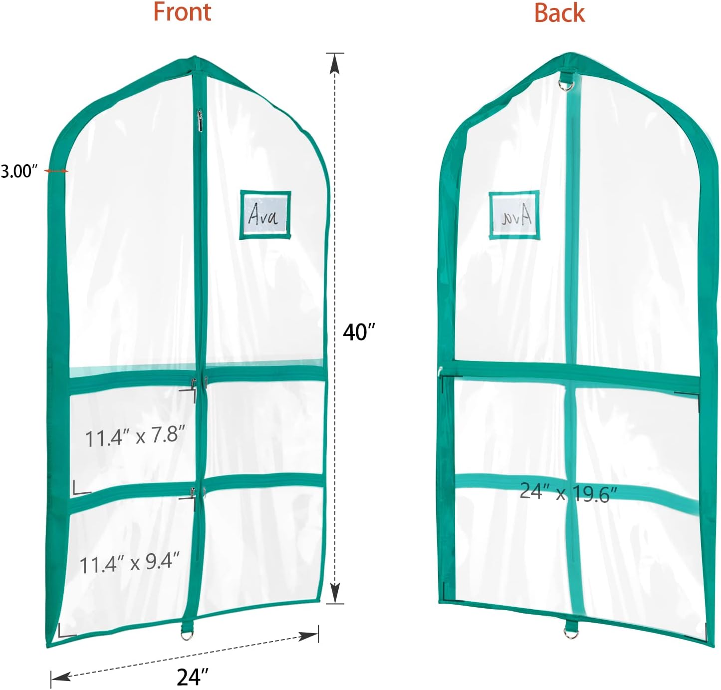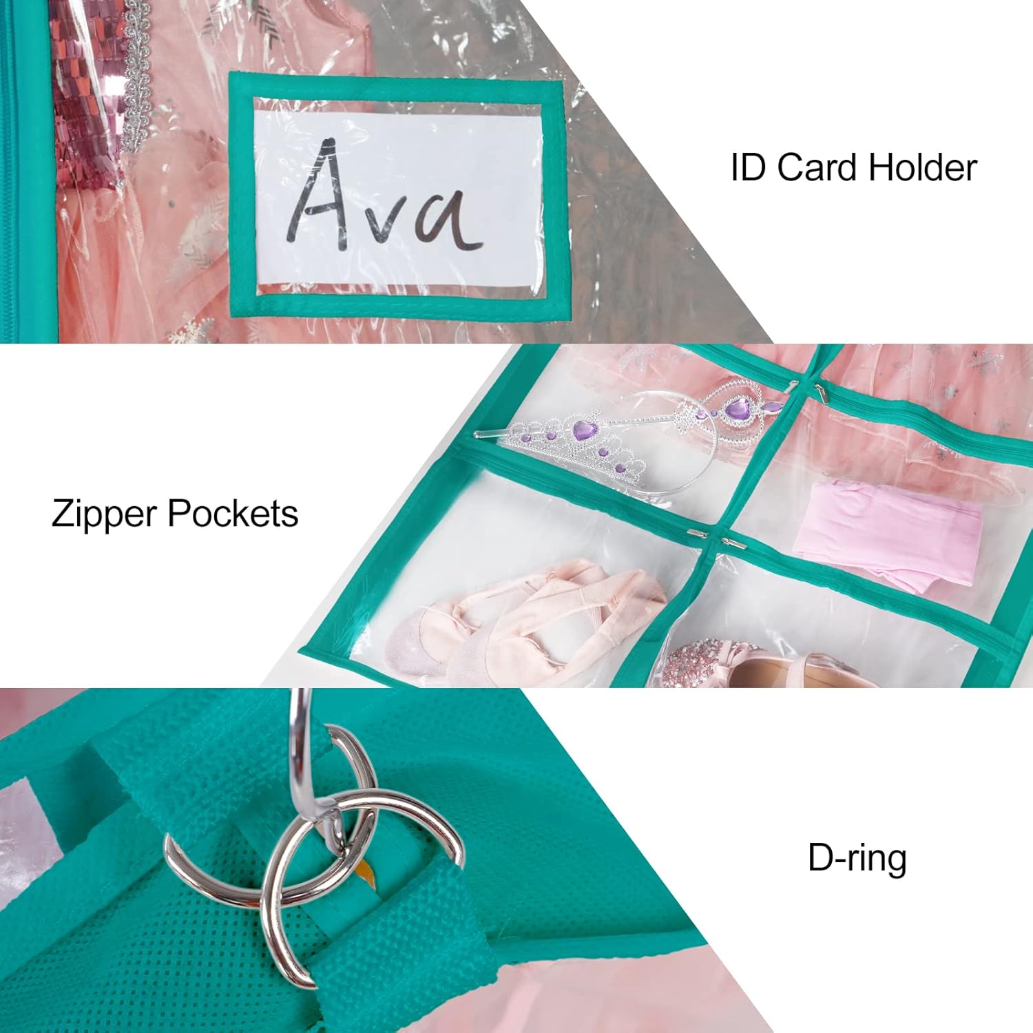 Engineered for the meticulous performer and serious organizer our PVC dance costume garment bag redefines garment storage This blue green garment bag wholesale solution combines a waterproof PVC exterior with breathable non woven panels creating a protective environment that shields delicate dance costumes suits and formal wear from dust moisture and wrinkles Beyond basic protection its standout feature is the multi pocket garment storage bag design featuring 4 medium clear zipper pockets and 1 large back zippered pocket This innovative layout allows for the separate organized storage of shoes belts makeup hair accessories and other essentials alongside the main garment eliminating clutter and saving crucial time before performances or events