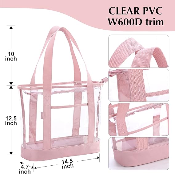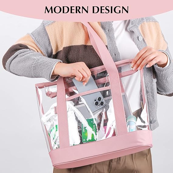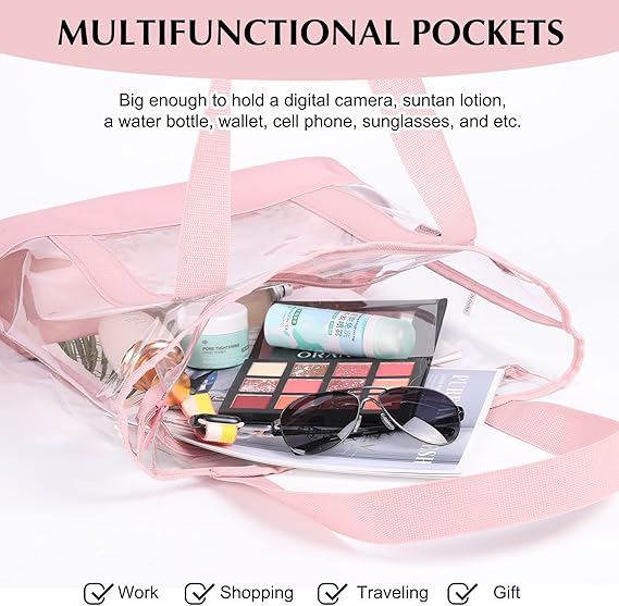 Engineered for versatility, this tote excels in a variety of settings. Its generous interior comfortably accommodates a 14-inch laptop, books, a water bottle, and daily essentials, making it an excellent choice for professionals, students, or travelers. As a stadium and venue-approved clear bag, it’s the perfect companion for concerts, festivals, or sporting events where security protocols require transparent carry-ons. More than just a functional item, its see-through design and subtle pink tint make it a fashion-forward statement that organizes your day while showcasing your curated essentials.