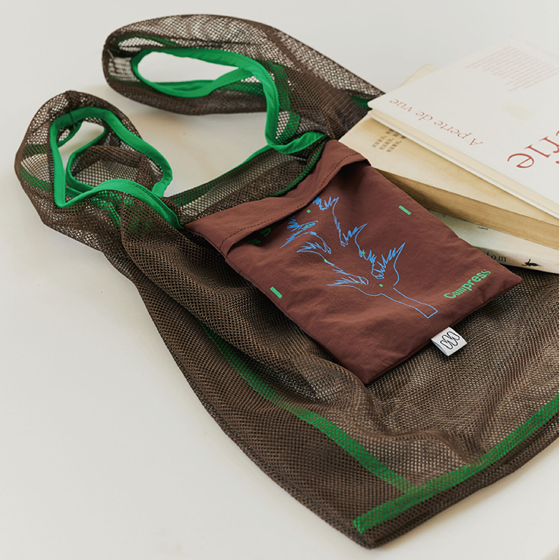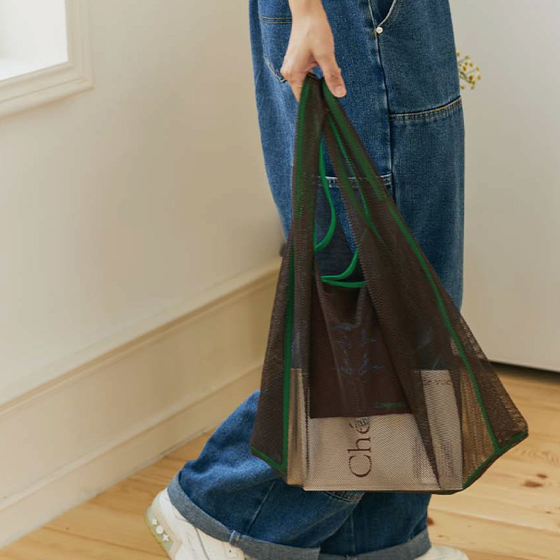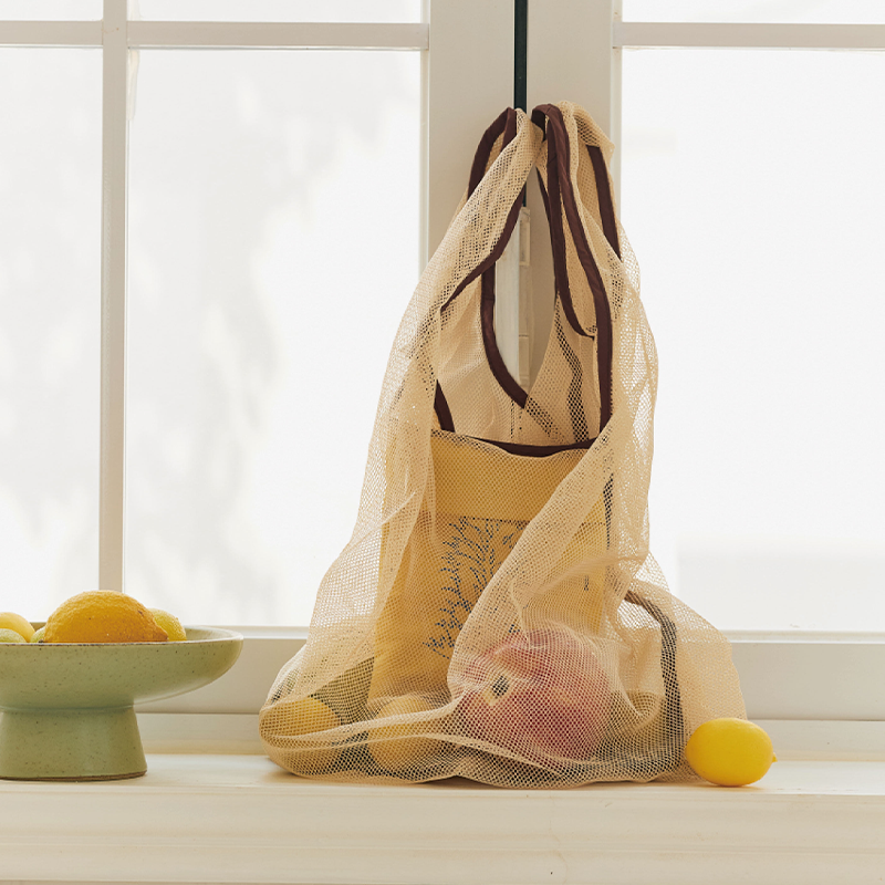 Keep the folded pouch in your daily bag as a sustainable backup. This lightweight mesh tote is ready for impromptu shopping, serving as a stylish and eco friendly alternative to single-use bags at boutiques or convenience stores.