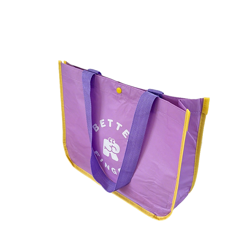 Discover the perfect blend of cheerful style and everyday practicality with our lightweight color block waterproof tote bag Designed for the on the go individual this bag is crafted from soft yet durable waterproof Lixin fabric with a fine textured finish ensuring it is both easy to carry and ready to protect your belongings from spills or light rain The eye catching lavender body is beautifully accented with vibrant yellow details including contrast piping and a matching snap button creating a fun and modern aesthetic that brightens any outfit.
