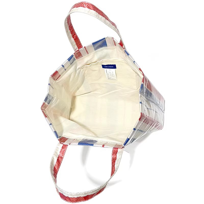 Channel effortless, retro-chic utility with the Red Blue Stripe Woven PVC Tote Bag. This bag captures the nostalgic charm of classic market baskets through its iconic red, white, and blue striped woven texture, now reimagined with modern durability. The entire exterior is sealed with a clear PVC coating, transforming the natural woven look into a fully waterproof, stain-resistant, and easy-to-wipe-clean surface. This fusion of vintage aesthetics and contemporary material technology results in a bag that is as practical for a rainy commute as it is stylish for a weekend outing. The bold stripe pattern ensures high visual impact, making it a standout versatile accessory that refuses to blend into the background.