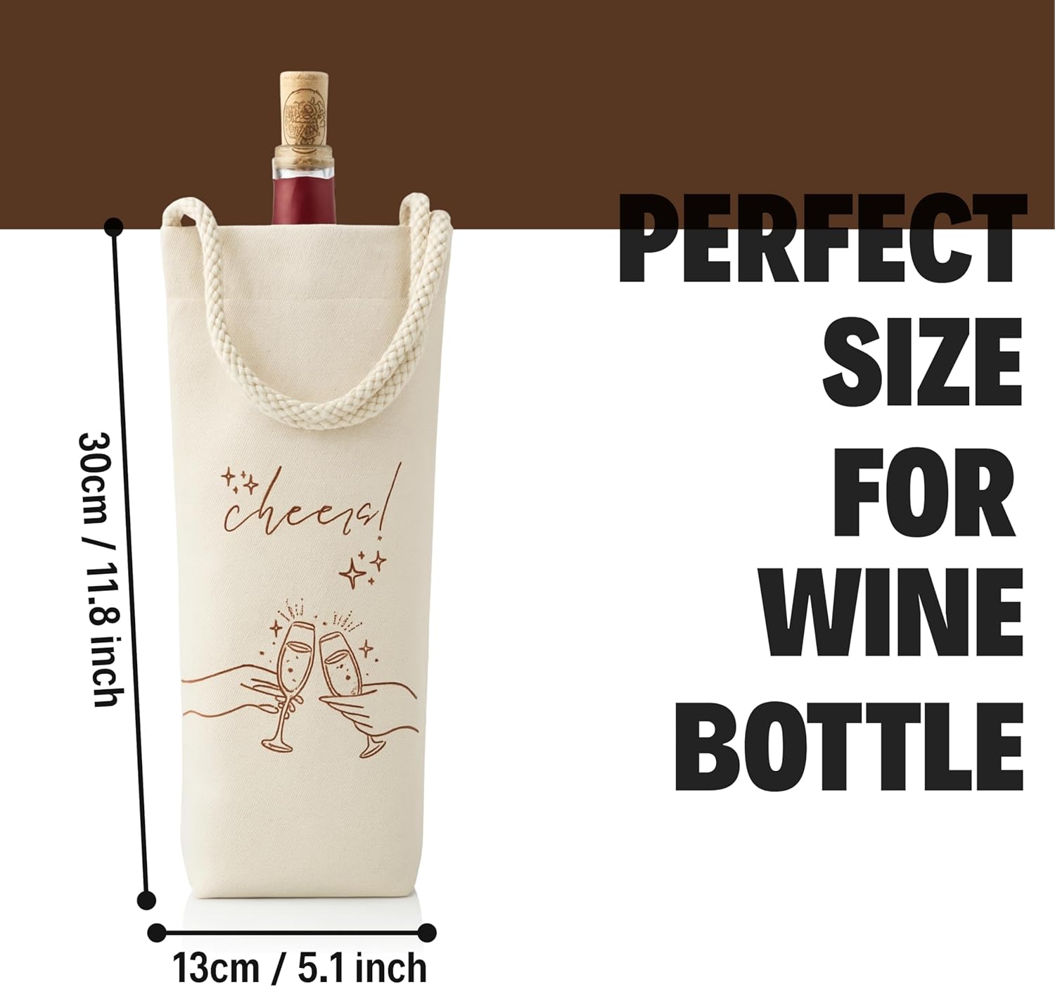 Most cotton totes are wide and shallow—built for apples and bread. This one is tall and slim, made specifically for a wine or champagne bottle. The 1.57‑inch width holds the bottle snug without wobbling, and the 11.8‑inch height leaves the cork accessible. It’s a bag that finally fits what you’re actually carrying.