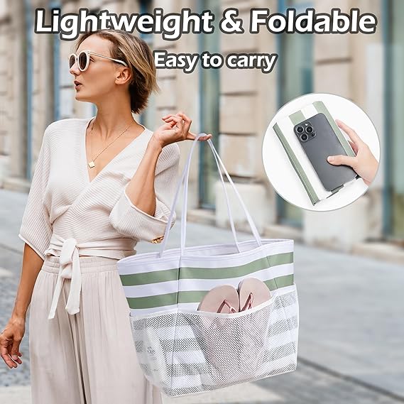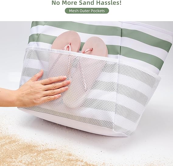 Pack towels, sunscreen, swimwear, snacks, and toys for a full day at the shore or pool. The mesh bottom allows sand to fall through and water to drain, keeping the bag light and dry. The interior zipper pocket secures phone and keys.
