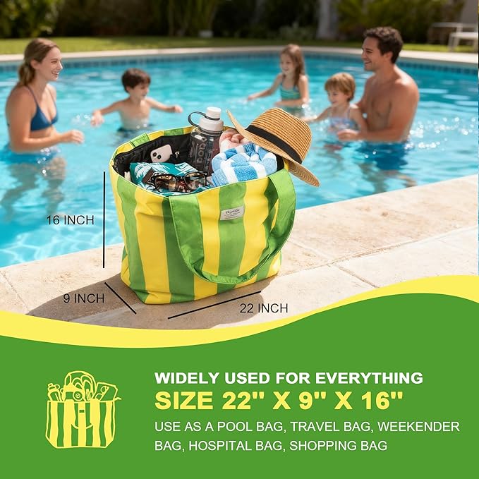 This bag effortlessly transitions from a day at the shore to your daily routine. Offering over 50 liters of organized space, it features multiple quick-access pockets and a secure zippered pouch, eliminating the need to dig through a cluttered main compartment. The vibrant, fade-resistant striped patterns are designed to make a joyful statement, turning heads with their stylish and elegant color combinations. As a testament to its practical design, this tote is completely machine washable, ensuring it stays fresh and vibrant through every adventure. It’s the ultimate all-in-one solution for the woman who demands a bag that is as functional for a grocery run as it is essential for a weekend getaway.