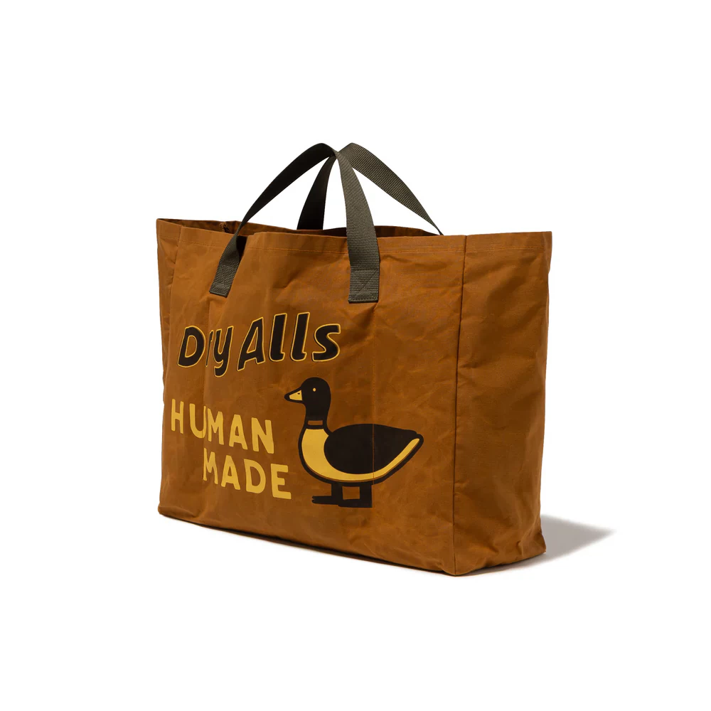 Carry a piece of iconic workwear heritage with the Vintage Logo Duck Water-Resistant Canvas Tote. This bag is built to last, crafted from heavyweight, distressed cotton canvas that boasts a naturally worn-in texture and a reliable water-resistant finish. The construction is reinforced with double-stitched seams throughout, ensuring exceptional durability even under heavy loads. The design tells a story: one side features the brand's signature logo and playful duck illustration, while the reverse showcases a classic heart emblem, creating a versatile, conversation-starting aesthetic. The utilitarian spirit is completed with comfortable military green webbing handles, anchored by robust cowhide leather patches that add both strength and a touch of rugged refinement.