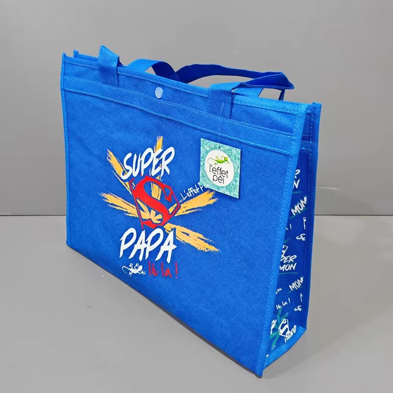 Show your love in vivid style with our Vibrant Mom Dad Printed Reusable Shopping Tote Bag. Crafted from premium thickened non-woven fabric, this eye-catching large capacity non-woven bag features high-saturation cartoon prints and custom text, making it a heartwarming gift that stands out. Thoughtful details include a practical snap closure tote design that keeps contents secure and extra-wide integrated handles that evenly distribute weight for comfortable carrying. The vibrant blue background paired with playful graphics adds a cheerful touch to shopping trips, family outings, or special gift-giving moments.
