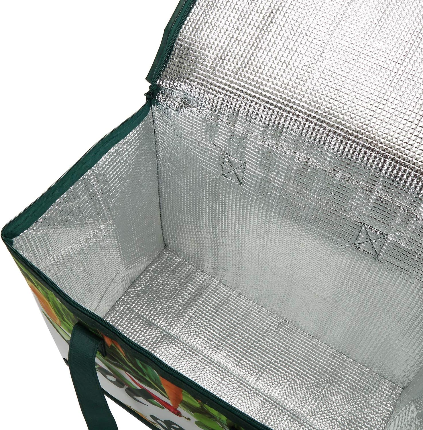 Meet the ultimate all-in-one carrier with the XL Collapsible Insulated Grocery Tote. This large collapsible shopping bag is engineered for durability and convenience, crafted from heavy-weight recycled non-woven fabric with aluminum thermal insulation to effectively maintain temperatures. Its practical 16”W x 13”H x 9”D dimensions provide plenty of space for bulky grocery items, multiple wine bottles, or meal delivery orders, while the rigid structure allows it to stand upright for easy packing and organization. The bag is built to last, featuring a super-strong construction that reliably supports over 30 lbs, a smooth-sliding dual-zipper top for secure, easy access, and flexible sides that adapt to odd-shaped items like watermelons or baguettes.