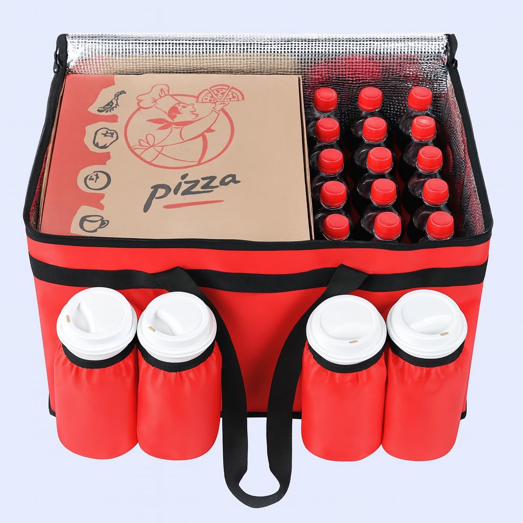 Perfect as a commercial food warmer for restaurant and app-based delivery drivers, accommodating multiple orders simultaneously with dedicated drink carriers that prevent spills during transport.