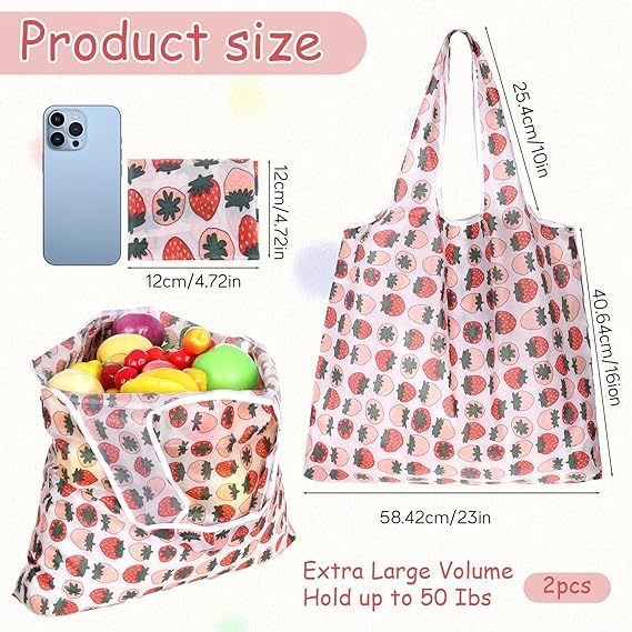 تم تصميم حقيبة اليد القابلة لإعادة الاستخدام هذه المصنوعة من البوليستر المتين لتحل محل الأكياس البلاستيكية ذات الاستخدام الواحد وتقليل التأثير البيئي. يضيف نمط الكرز الفراولة اللطيف لمسة مرحة، مما يجعله إكسسوارًا أنيقًا لرحلات التسوق. يمكن طي الحقيبة بشكل أنيق في حقيبتها بحجم الجيب بقياس 4.72 × 4.72 × 0.39 بوصة، وتزن 2.22 أونصة فقط، لذلك يمكن وضعها بسهولة في حقيبة اليد أو الجيب أو حجرة قفازات السيارة. عند فتحها، فإنها توفر سعة كبيرة للبقالة أو مستلزمات الشاطئ أو مستلزمات النزهة أو أدوات السفر. أحزمة كتف مريحة توزع الوزن بالتساوي، مما يجعل الحمل الطويل سهلاً. يمكن غسل المادة في الغسالة لسهولة التنظيف والاستخدام طويل الأمد. تحتوي كل مجموعة على حقيبتين.