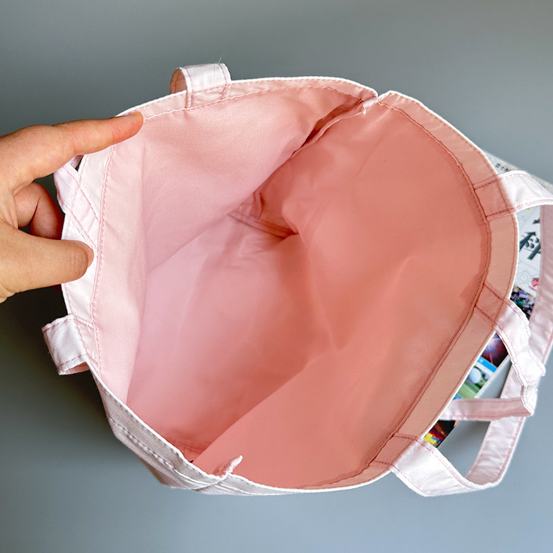 Diese aus hochwertigem Baumwollstoff gefertigte Tragetasche bietet ein sanftes, hautfreundliches Tragegefühl mit hervorragender Atmungsaktivität und Beständigkeit gegen Pilling und Verformung. Auf der Vorderseite befindet sich ein niedlicher Cartoon-Print mit kontrastierendem Schriftzug, der für einen weichen, jugendlichen Look sorgt. Durch den verstellbaren Bindeverschluss kann die Tasche zur Dekoration mit einer Schleife befestigt oder zum Sichern des Inhalts festgezogen werden, was sowohl Stil als auch Funktionalität verleiht. Die breiten Schultergurte aus Baumwolle sind doppelt genäht, sodass sie bequem mit einer Schulter getragen werden können, ohne einzuschneiden. Die Innenseite ist mit Twill-Baumwolle gefüttert und mit sauberen, verstärkten Nähten versehen, die für Strapazierfähigkeit sorgen. Mit einer Breite von 37 cm, einer Höhe von 35 cm und einer Tiefe von 12 cm sowie einer Riemenlänge von 28 cm bietet es Platz für A4-Akten, einen 13-Zoll-Laptop, Bücher, Wasserflaschen und Kosmetika. Ideal zum Pendeln, Campusleben, Einkaufen und Kurztrips. Erhältlich in zartem Rosa und frischem Blau.