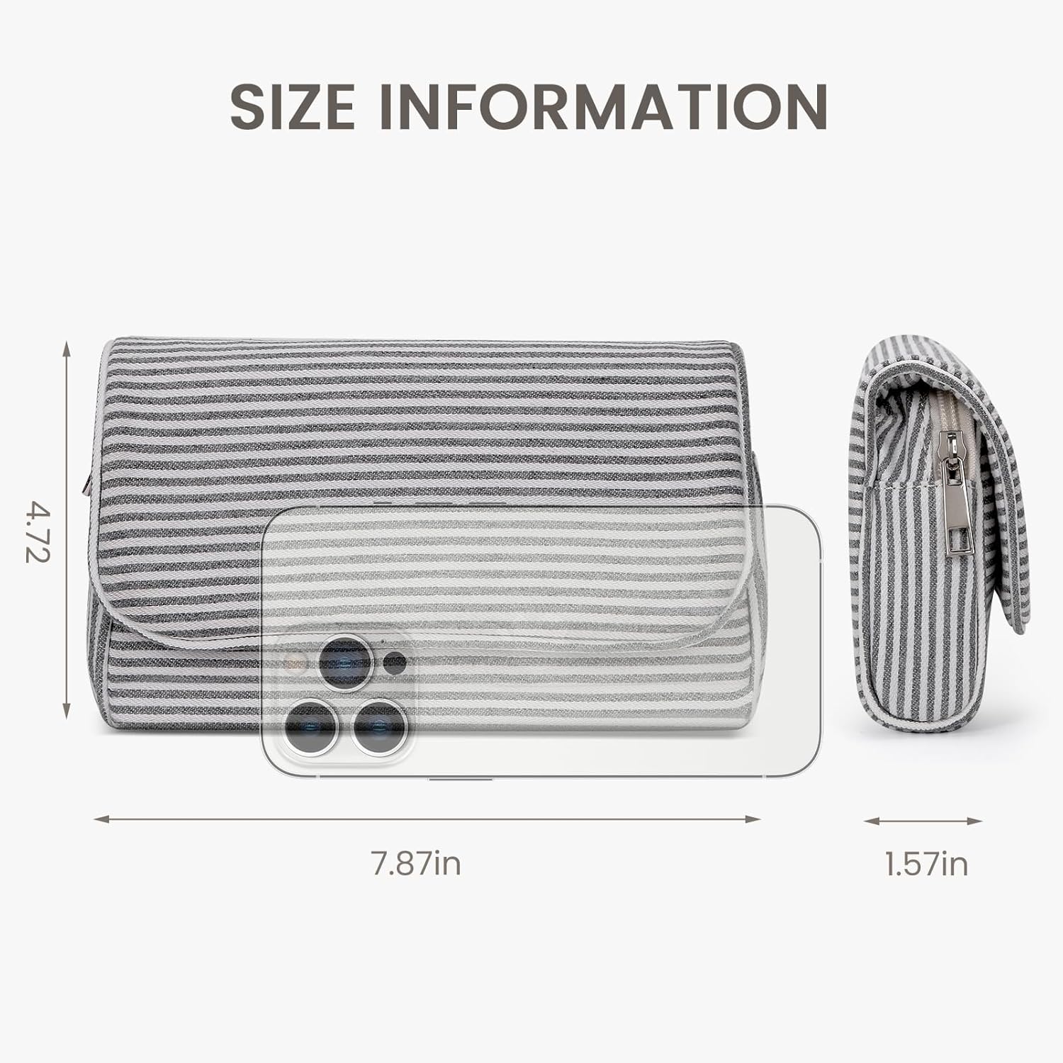 Mit einer Länge von 7,87 Zoll, einer Breite von 1,57 Zoll und einer Höhe von 4,72 Zoll passt das schlanke, kompakte Design problemlos in Handtaschen oder Tragetaschen und bietet Platz für tägliches Make-up, Toilettenartikel, Accessoires oder kleine wichtige Dinge. Mit trendigen Streifen- und verspielten Polka-Dot-Designs eignet sich diese Tasche für Reisen, den Arbeitsplatz, Wochenendausflüge und den täglichen Gebrauch und ist somit eine charmante, praktische Geschenkoption. Vollständig anpassbar durch OEM- und ODM-Dienste mit benutzerdefinierten Farben, Mustern oder Logodrucken, die für Großbestellungen verfügbar sind.