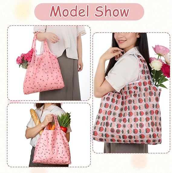 Diese wiederverwendbare Tragetasche aus strapazierfähigem Polyester soll Einweg-Plastiktüten ersetzen und die Umweltbelastung reduzieren. Das niedliche Erdbeer-Kirsch-Muster sorgt für eine verspielte Note und macht es zu einem stilvollen Accessoire für den Einkaufsbummel. Die Tasche lässt sich ordentlich in eine eigene taschengroße Tasche mit den Maßen 4,72 x 4,72 x 0,39 Zoll zusammenfalten und wiegt nur 2,22 Unzen, sodass sie problemlos in eine Handtasche, Hosentasche oder das Handschuhfach eines Autos passt. Im aufgeklappten Zustand bietet es großzügigen Stauraum für Lebensmittel, Strandutensilien, Picknickutensilien oder Reiseutensilien. Bequeme Schultergurte verteilen das Gewicht gleichmäßig und erleichtern so das längere Tragen. Das Material ist für eine einfache Reinigung und eine lange Nutzungsdauer maschinenwaschbar. Jedes Set enthält 2 Taschen.