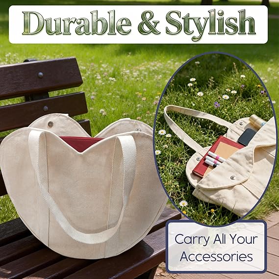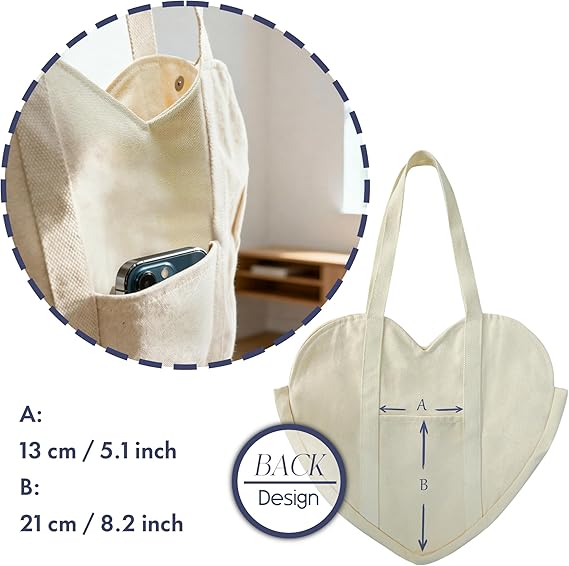 Diese herzförmige Tragetasche ist aus strapazierfähigem, hochwertigem Canvas gefertigt und kombiniert verspieltes Design mit praktischer Funktionalität. Die einzigartige, minimalistische Herz-Silhouette verleiht alltäglichen Looks einen Hauch von Liebe und Persönlichkeit und ist in klassischem Schwarz und elegantem Off-White für vielseitige Stylings erhältlich. Das Material ist leicht und dennoch robust, so konstruiert, dass es dem täglichen Gebrauch standhält und gleichzeitig faltbar bleibt, um bei Nichtgebrauch kompakt verstaut zu werden.